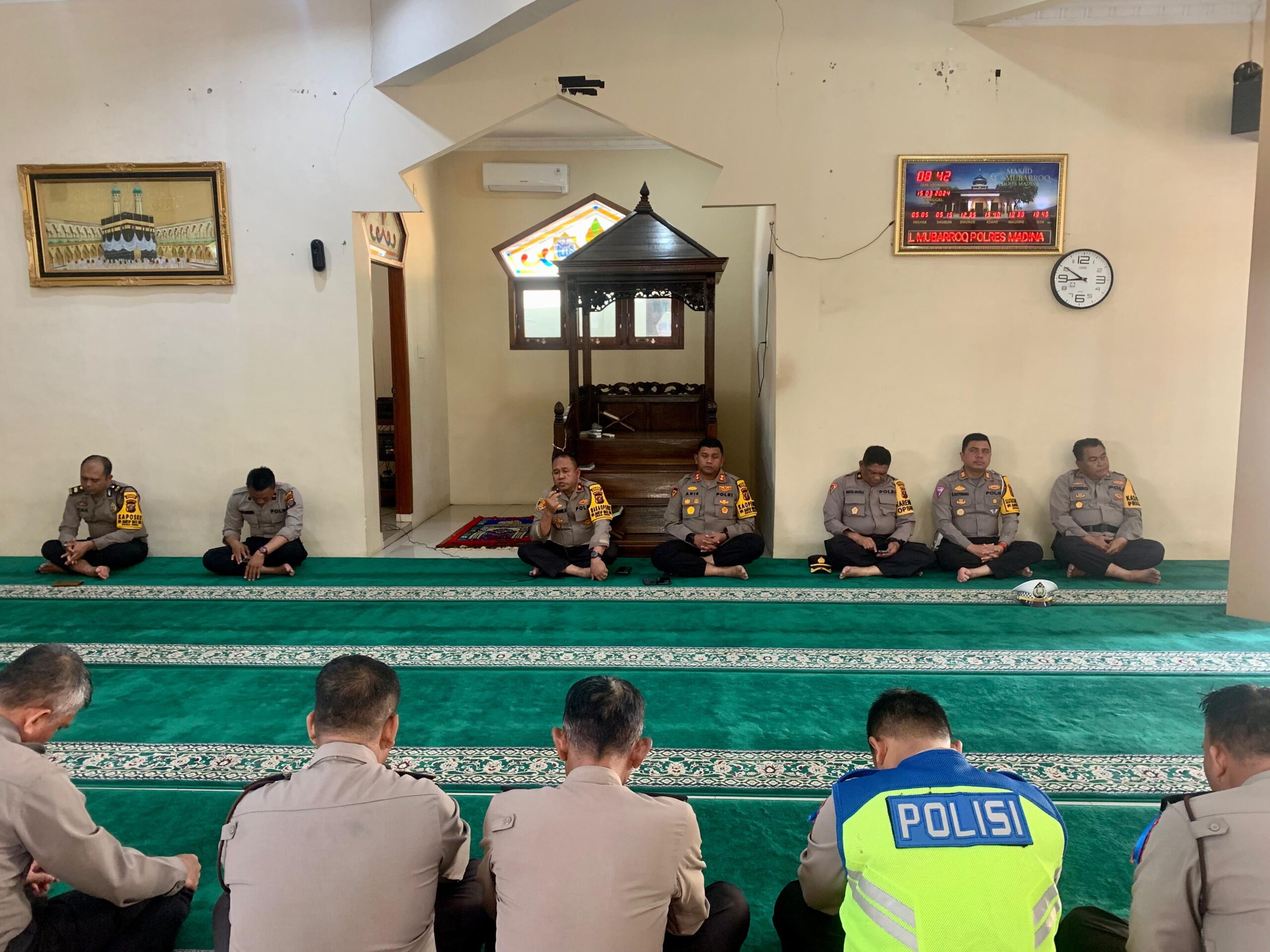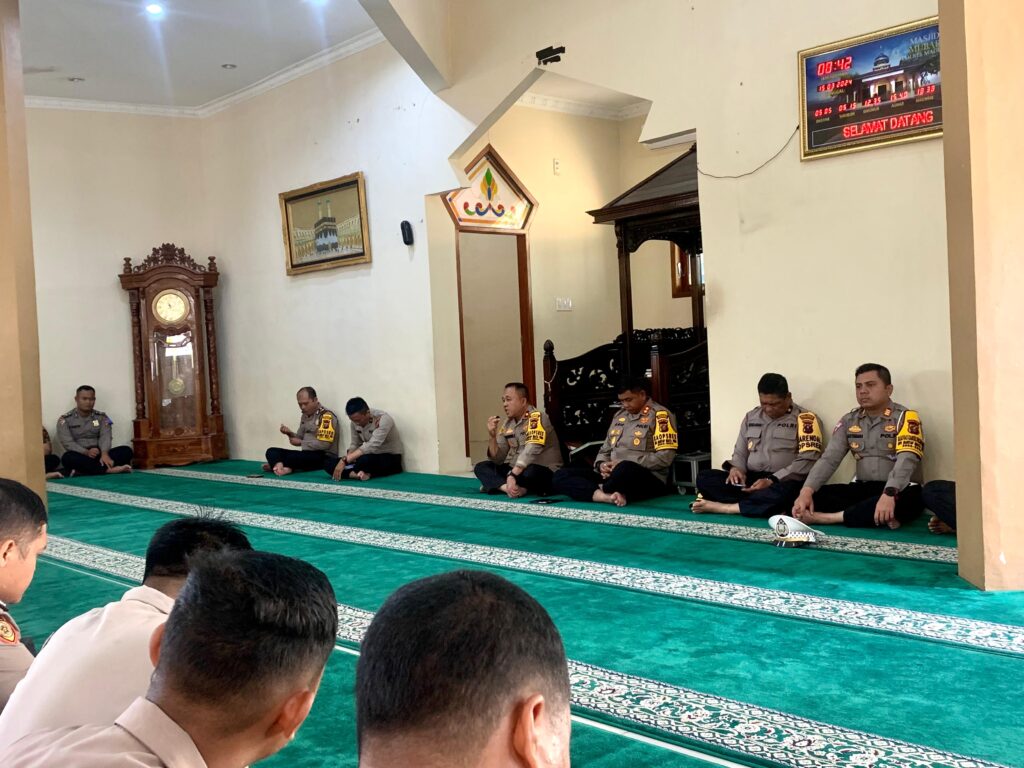 Madina Sumut // nusantararaya.com/ Personil Polres Madina Dibawah Pimpinan AKBP Arie Sofandi Paloh, S.H, S.I.K Bersama Para PJU Dan Perwira Polres Madina rutin setiap hari Jum’at melaksanakan kegiatan Pembinaan Rohani Dan Mental (Binrohtal) di Mesjid Al Mubaroq Polres Madina.(15/03/2024)