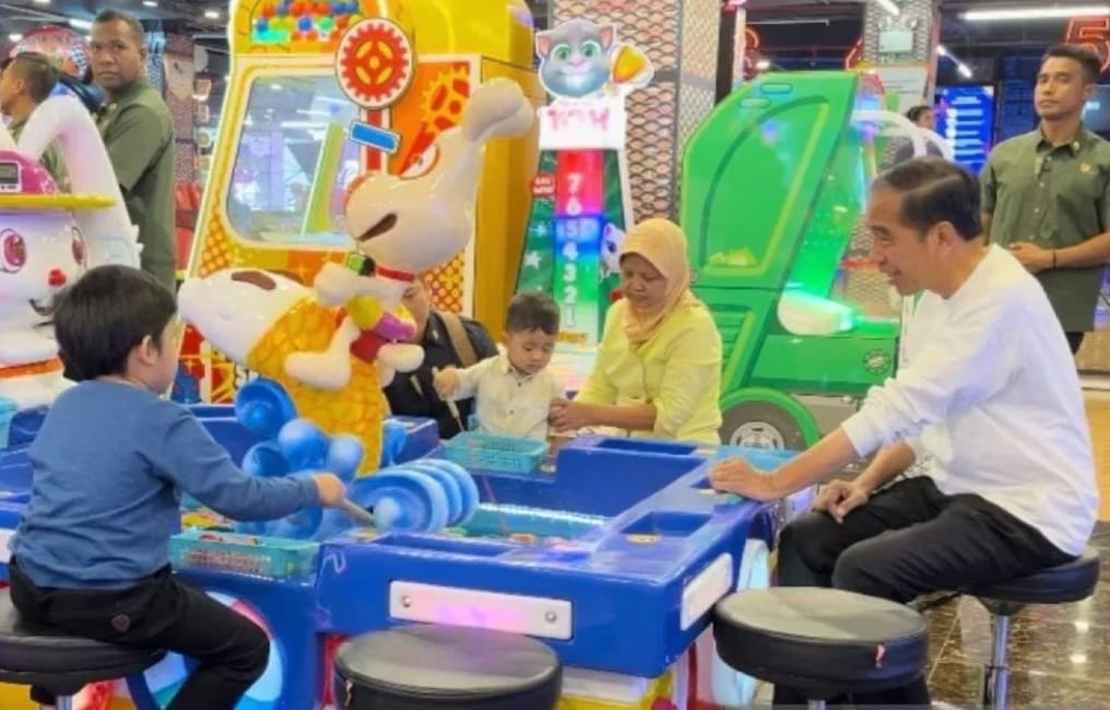 Setibanya di Botani Square Mall, Presiden Jokowi langsung membawa cucunya bermain di wahana bermain Funworld yang berada di lantai Lower Ground (LG).
