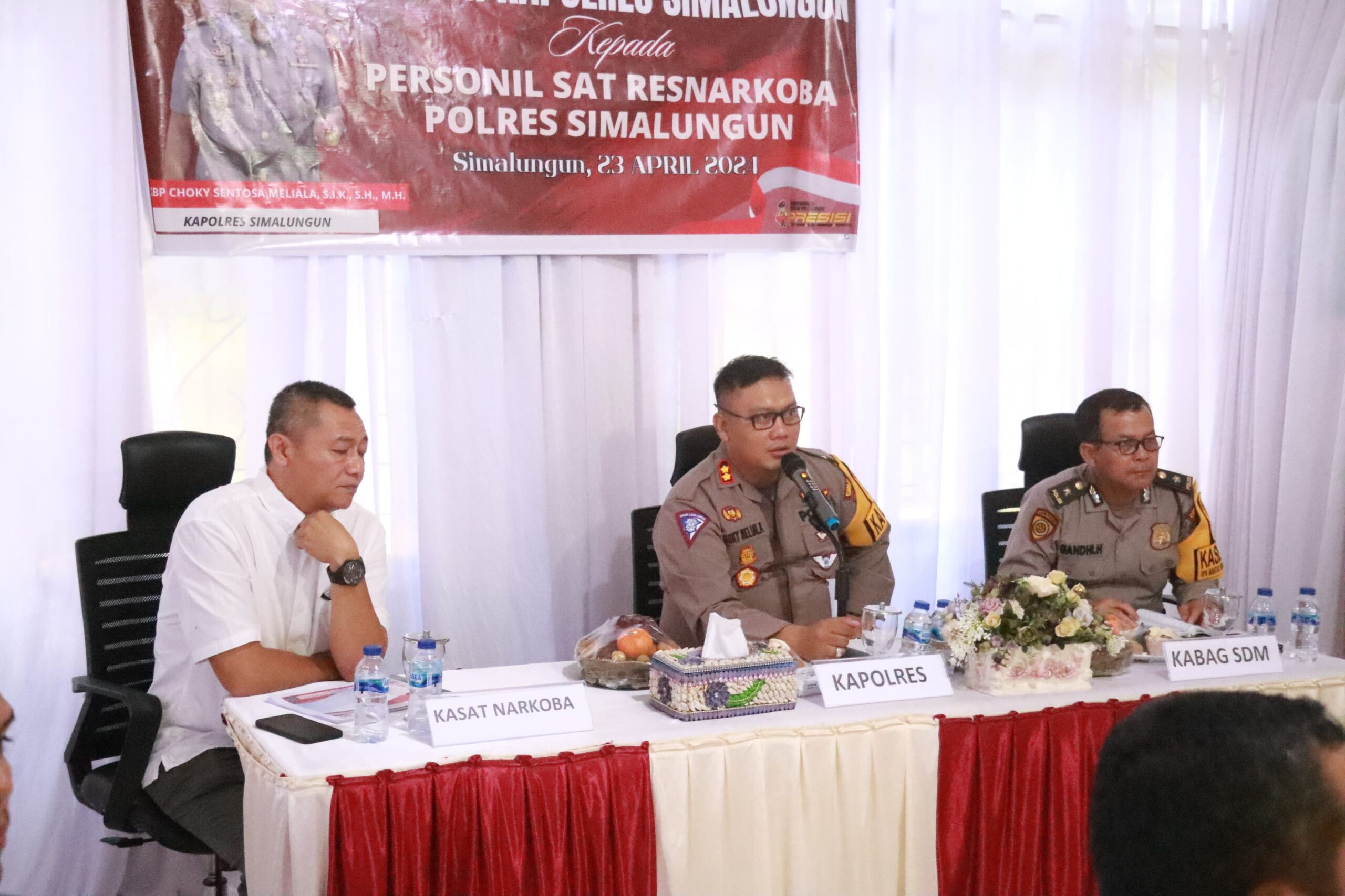SIMALUNGUN // nusantararaya.com/ Dalam rangka memperkuat pemberantasan narkotika yang merupakan musuh bersama, Kapolres Simalungun, AKBP Choky Sentosa Meliala, S.I.K., S.H., M.H., secara langsung memimpin kegiatan Penyampaian Arahan kepada Personel Satuan Reserse Narkoba (Sat Resnarkoba) Polres Simalungun. Kegiatan ini dilaksanakan di Kantor Sat Resnarkoba Polres Simalungun, Jalan Jhon Horailam Saragih, Kecamatan Pamatang Raya, Kabupaten Simalungun, pada hari Selasa, 23 April 2024 mulai pukul 13.30 WIB hingga selesai.