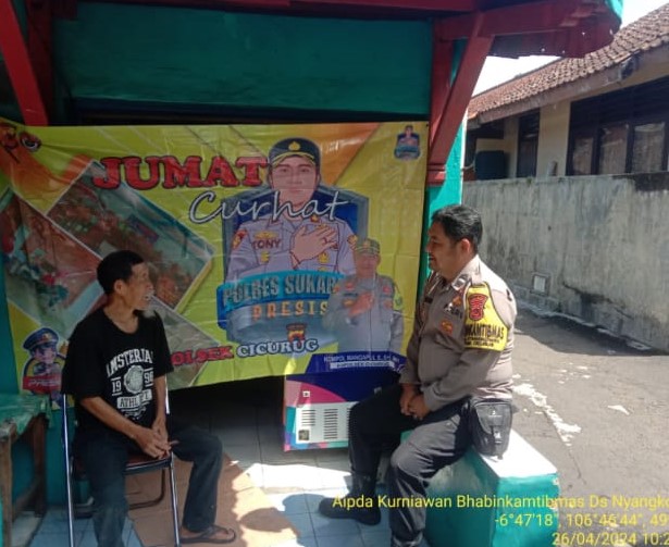 Sukabumi // nusantararaya.com/ Dalam rangka meningkatkan keamanan dan kenyamanan masyarakat, Polsek Cicurug, Polres Sukabumi, mengadakan kegiatan “Jum’at Curhat Presisi”. Kegiatan ini dilaksanakan di Kp. Aspol Rt 04/7 Kelurahan Cicurug, Kecamatan Cicurug, Kabupaten Sukabumi, pada hari Jum’at, 26 April 2024, dimulai pukul 10.00 WIB hingga selesai.