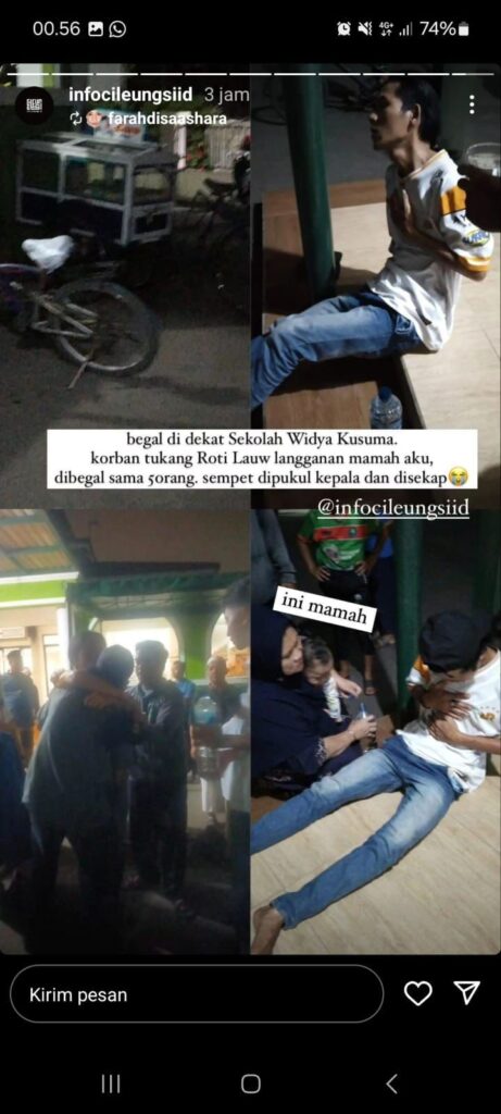 Kapolsek Cileungsi Kompol Wahyu Maduransyah Putra,.ST,.SIK,.MH menjelaskan dimana adanya Korban AS (1999) dengan tempat tinggal di Kp sipayung kec Sukajaya kab Bogor seorang pedagang roti keliling yang sedang berjualan roti tiba tiba dipanggil oleh seorang laki laki yang tidak dikenal untuk menanyakan menjual roti ada rasa apa saja. Tiba tiba korban langsung dipukul oleh pelaku dengan tangan kosong sehingga mengenai jidat korban.