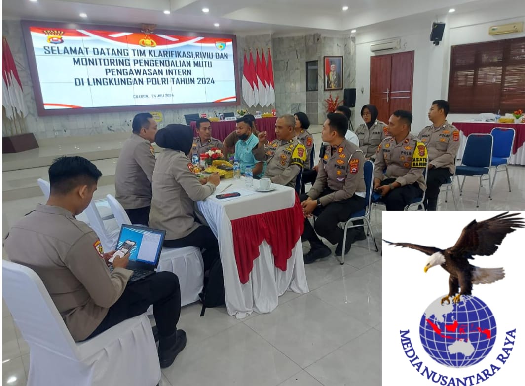 Cilegon // nusantararaya.com / Pada hari Rabu tanggal 24 Juli 2024 pukul 09.00 WIB di Aula Wicaksana Leghawa Polres Cilegon dilaksanakan kegiatan Klarifikasi Reviu dan Monitoring Pengendalian Mutu Pengawasan Intern Tahun 2024 dari Itwasum Mabes Polri.