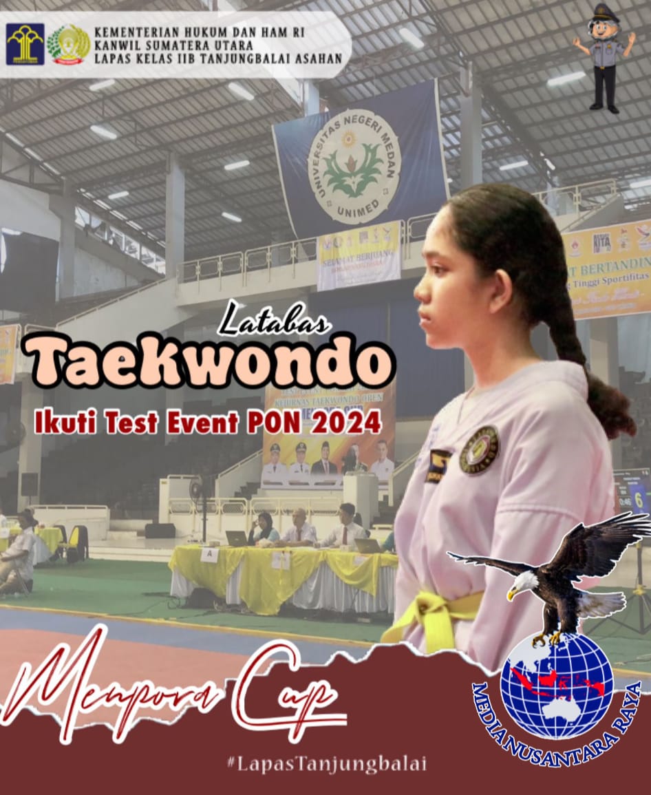 Medan // nusantararaya.com / Taekwondo Latabas yang pusat latihannya berada di Lapas Tanjungbalai Asahan mengirim 18 orang atlet yang siap bertanding pada “Test Event PON XXI 2024 KEJURNAS TAEKWONDO OPEN MENPORA CUP” di Gedung serbaguna Universitas Medan. Jumat, (02/08/2024).