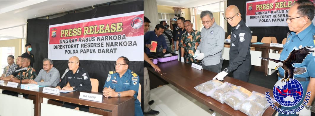 PAPUA BARAT, // nusantararaya.com / Kepolisian Daerah Papua Barat menggelar konferensi pers pengungkapan tindak pidana narkotika jenis ganja oleh Direktorat Reserse Narkoba Polda Papua Barat, Kamis (15/8/2024) pukul 09.30 WIB bertempat di lobi lantai 1 Mapolda Papua Barat.