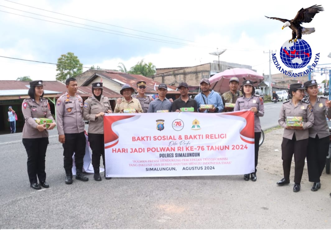 Simalungun // nusantaraya.com / Dalam rangka memperingati Hari Jadi Polisi Wanita (Polwan) Republik Indonesia ke-76 yang jatuh pada tahun 2024, Polwan Polres Simalungun menggelar kegiatan Bakti Sosial dan Bakti Religi dengan tema “Polwan Presisi Mendukung Percepatan Transformasi yang Inklusif dan Berkelanjutan Menuju Indonesia Emas”.