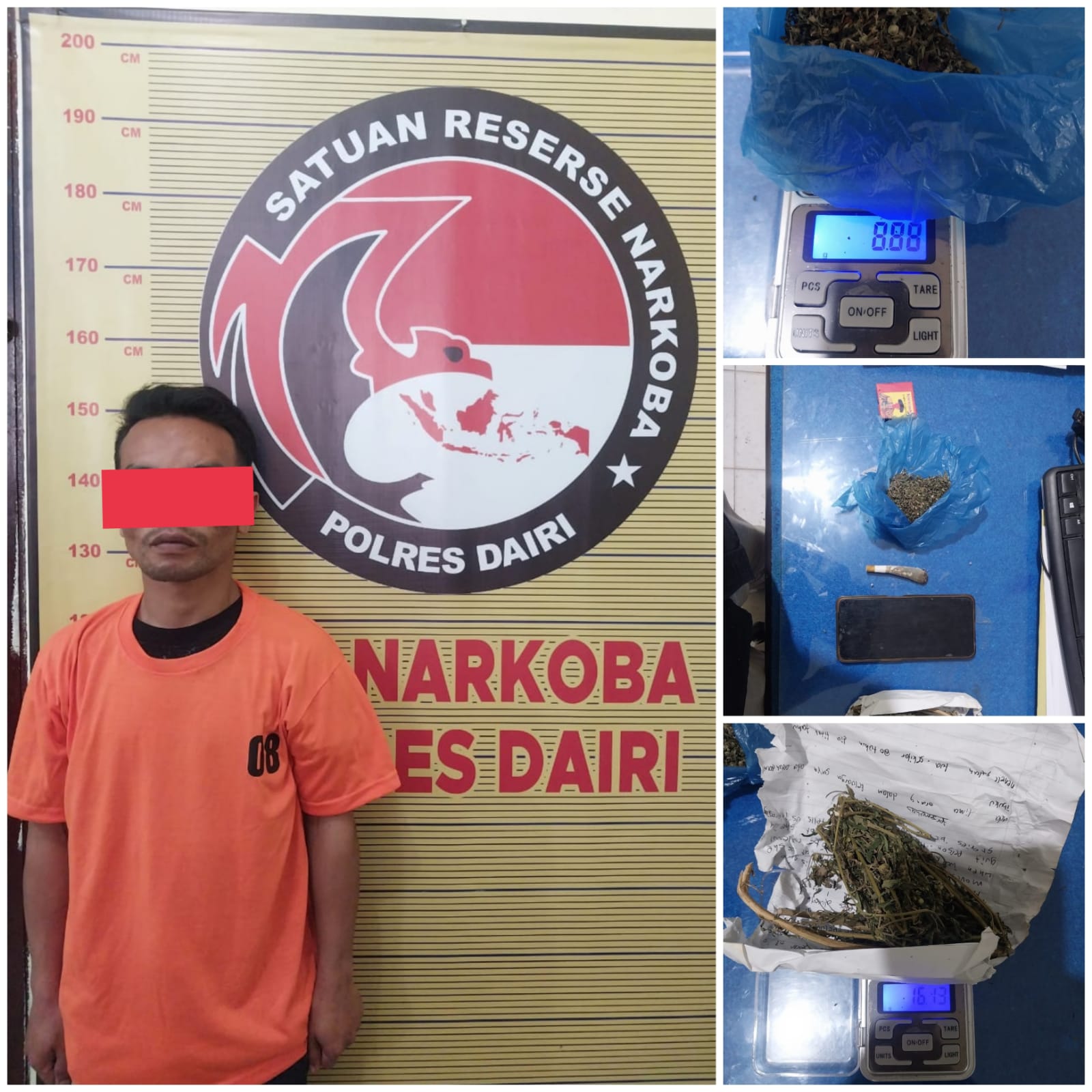 Dairi Sumut // nusantararaya.com / Sat Narkoba Polres Dairi meringkus seorang pria berinisial KM (29) atas kepemilikan narkotika jenis Ganja di rumahnya yang berada di Desa Pegagan Julu V Kecamatan Sumbul Kabupaten Dairi, Rabu (22/1/2025).