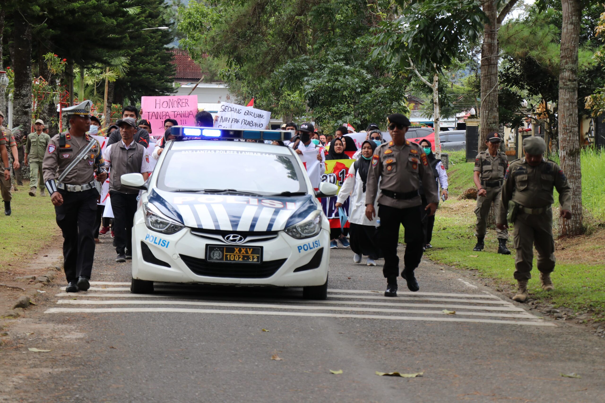 LAMPUNG BARAT // Nusantararaya.com /Polres Lampung Barat mengerahkan sekitar 90 personel untuk mengawal aksi damai yang dilakukan oleh Forum Honorer R2 dan R3 Kabupaten Lampung Barat. Aksi ini diikuti oleh sekitar 500 masa yang menuntut perhatian terkait nasib tenaga honorer di wilayah tersebut.rabu .(22/01/25).