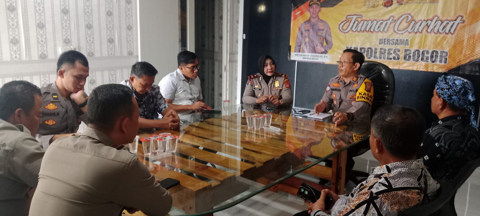 Bogor // nusantararaya.com /. POLRES BOGOR – Dalam upaya meningkatkan hubungan dan komunikasi antara Polres Bogor dan masyarakat, Sat Binmas Polres Bogor menggelar kegiatan “Jumat Curhat” yang berlangsung di Ruang Mediasi Polres Bogor pada pukul 09.00 hingga 10.00 WIB.