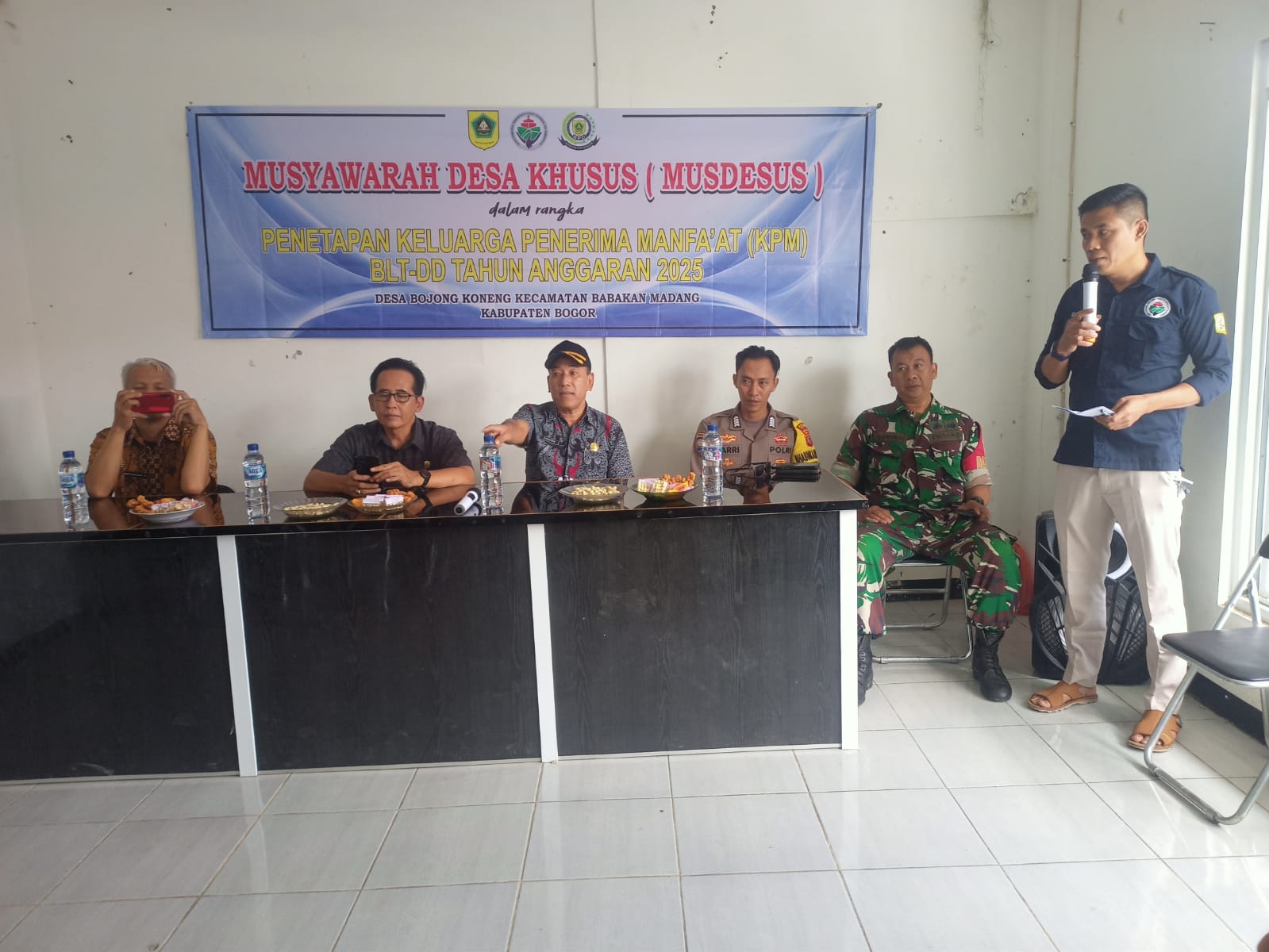 Bogor // nusantararaya.com/. POLRES BOGOR – Sinergitas TNI Polri Wilayah Hukum Polsek Babakanmadang di Aula Kantor Desa Bojong Koneng Kec. Babakan Madang Kab. Bogor telah dilaksanakan Musdesus Penetapan KPM BLT-DD Ta.2025 yang dipimpin oleh Sekdes Bojong Koneng Bp.Suganda, yang diikuti oleh Perangkat Desa. Jumat (24/1/2025)