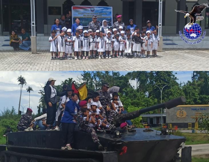 KOTA SORONG // nusantararaya.com / 25 Januari 2025 – Dalam upaya mengenalkan profesi TNI Angkatan Laut (TNI AL) dan Korps Marinir kepada generasi muda, puluhan murid Taman Kanak-Kanak (TK) dan Pendidikan Anak Usia Dini (PAUD) Hang Tuah bersama para guru pembina melakukan kunjungan yang penuh semangat ke Lantamal XIV Sorong dan Sarang Petarung Pasmar 3, yang berlokasi di Jln Poros Katapop, Kelurahan Majener, Distrik Salawati, Kabupaten Sorong, Papua Barat Daya.