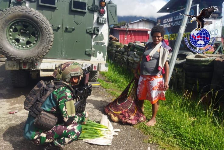 Oleh karenanya, hari Jumat tersebut, para Prajurit TNI memanfaatkan patroli pengamanan wilayah dengan membantu perekonomian warga yang berjualan hasil tani.