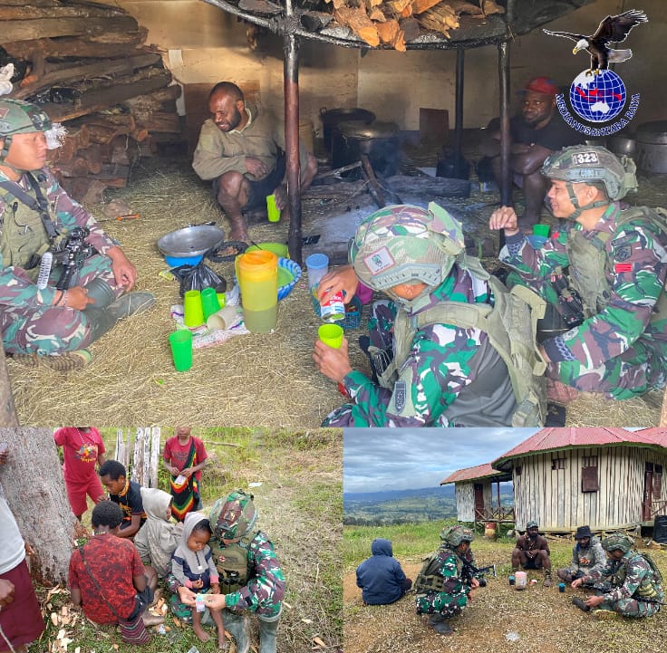 ILAGA // nusantararaya.com / Personil Satgas Yonif 323/Buaya Putih Kostrad melaksanakan kegiatan Anjangsana sekaligus memberikan Pelayanan Pengobatan Gratis kepada masyarakat Kampung Wako, Distrik Ilaga, Kabupaten Puncak, Papua Tengah, Sabtu (25/01/2025).