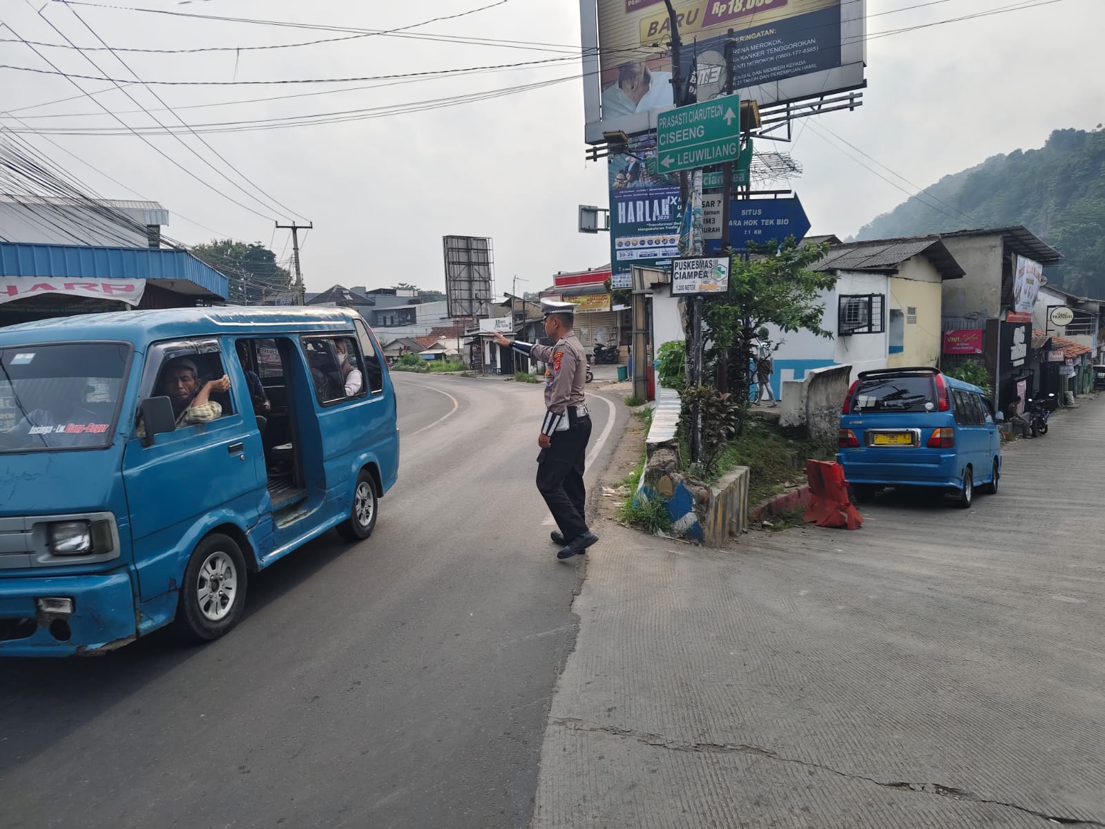 Anggota Lantas Polsek Ciampea Polres Bogor membantu masyarakat dengan mengatur lalulintas dan ketika hendak menyebrang jalan, petugas juga melakukan pengaturan terhadap anak-anak sekolahan yang menyebrang menuju Sekolah, menghindari adanya kemacetan serta menekan angka kecelakaan lalu lintas.