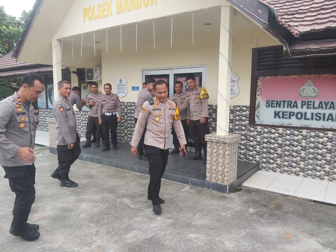 Mandor-Landak//NUSANTARARAYA COM// Kapolres Landak AKBP Siswo Dwi Nugroho, S.H.,S.I.K didampingi Ketua Bhayangkari Cabang Polres Landak Indry Siswo melaksanakan kegiatan silaturahmi dan Pengecekan Personil Polsek Mandor, pada sabtu siang (5/4/25).