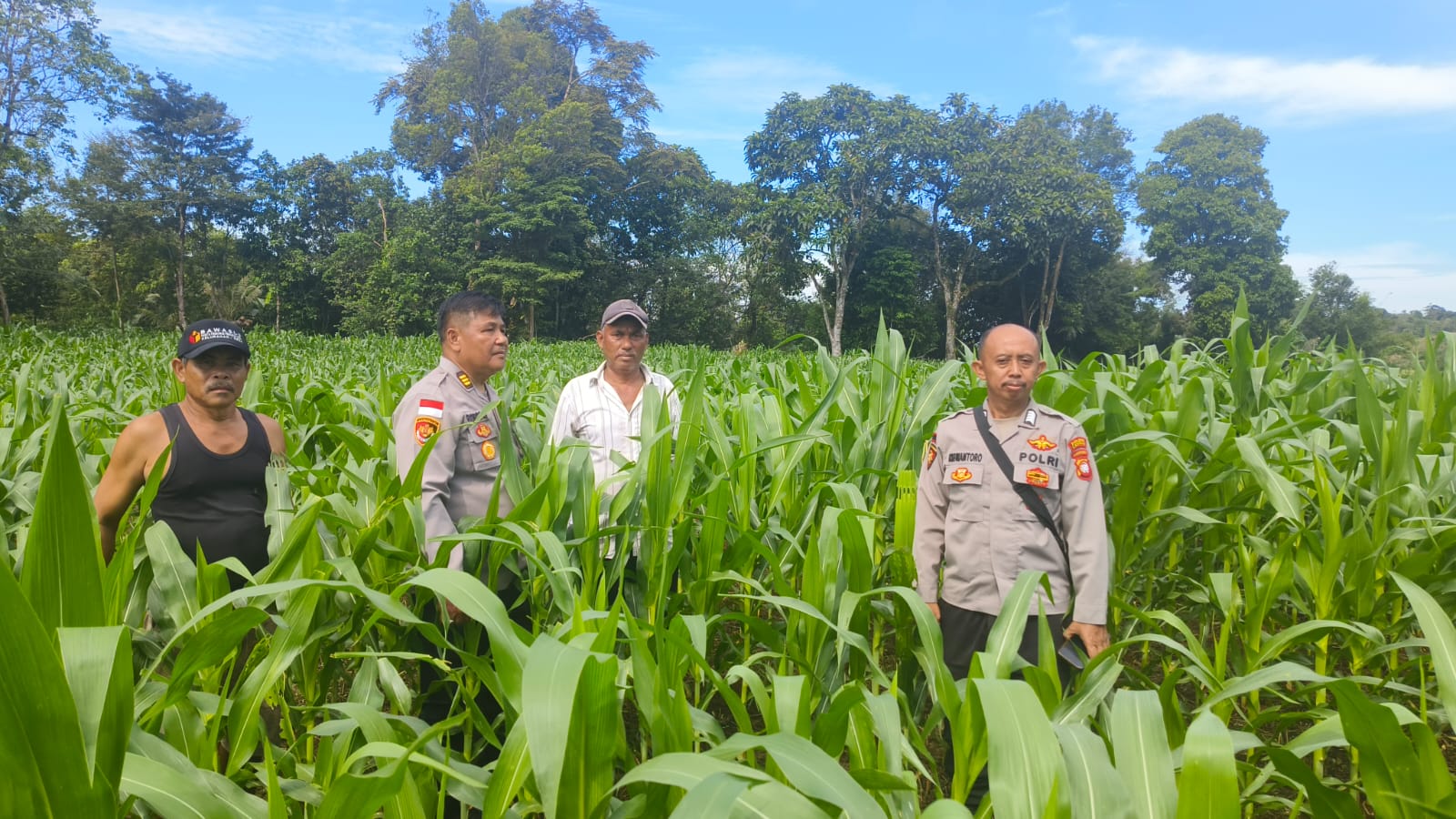 POLRES LANDAK//NUSANTARARAYA COM//Mempawah Hulu, untuk mengetahui secara langsung perkembangan tanaman jagung tumbuh dengan baik , Pamatwil ketahanan pangan AKP Roberd Suryanto didampingi Bintara Penggerak Ketahanan Pangan Bripka Riswantoro melaksanakan pengecekan Progres Penanaman Jagung milik kelompok Tani Nyimpuk di Desa Tunang Kecamatan Mempawah Hulu Kabupaten Landak. Jumat 4/4/2025
