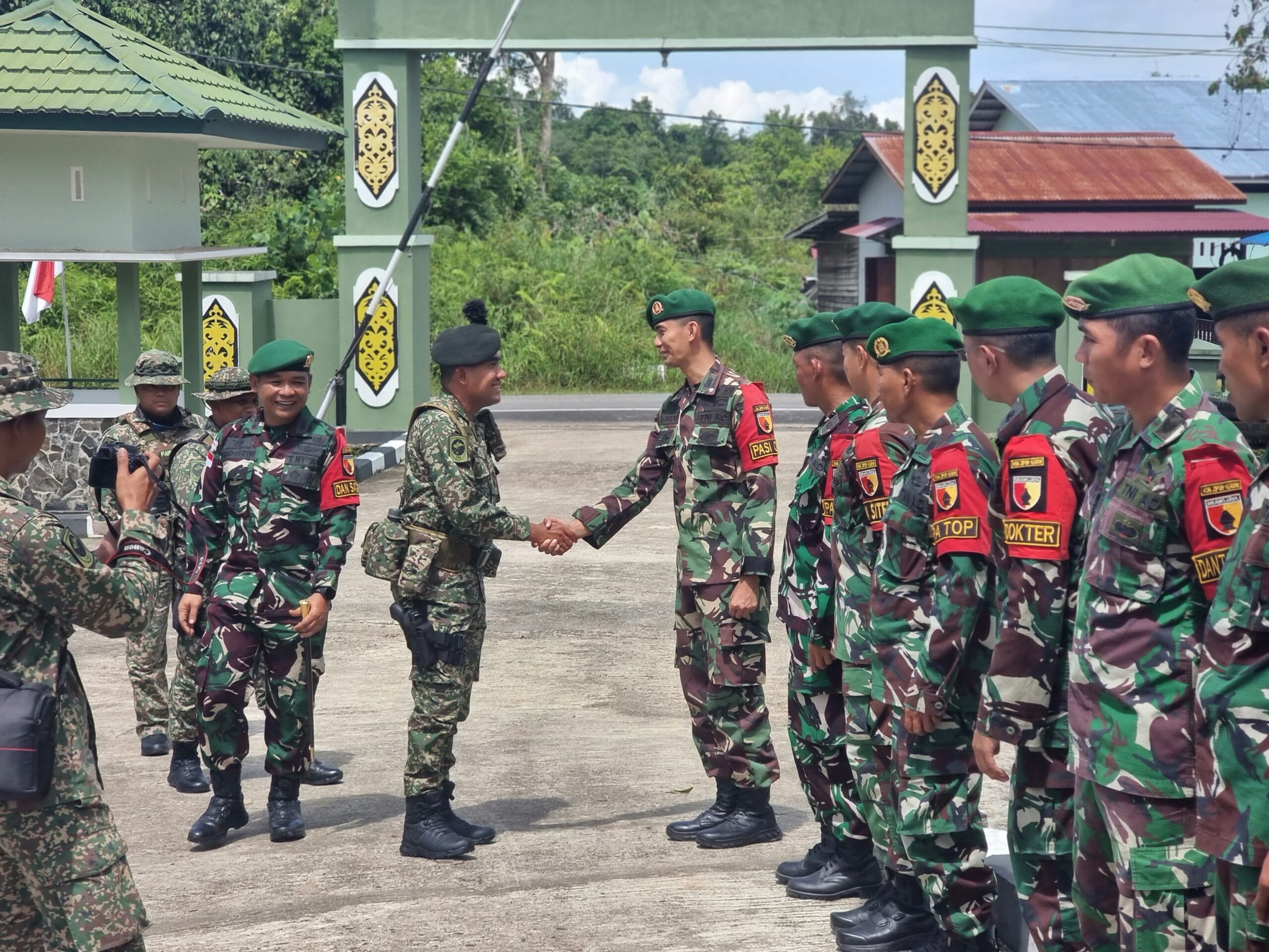Kunjungan ini disambut langsung oleh Dansatgas Pamtas RI–Malaysia, Letnan Kolonel Czi Shobirin Setio Utomo, S.H., beserta jajaran dan anggota. Agenda diawali dengan penyambutan militer, ramah tamah, dan paparan singkat mengenai tugas pokok dan tanggung jawab Satgas dalam menjaga keamanan wilayah perbatasan.