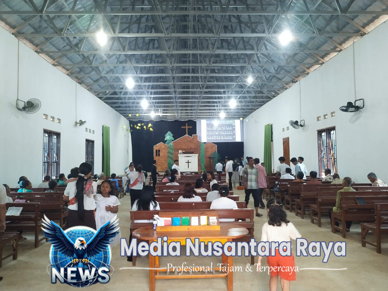 Salah satu ibadah yang mendapat pengamanan ketat berlangsung di Gereja Yohanes Paulus Tiyuh  Murni Jaya Kec.Tumijajar Kab.Tulang Bawang Barat.