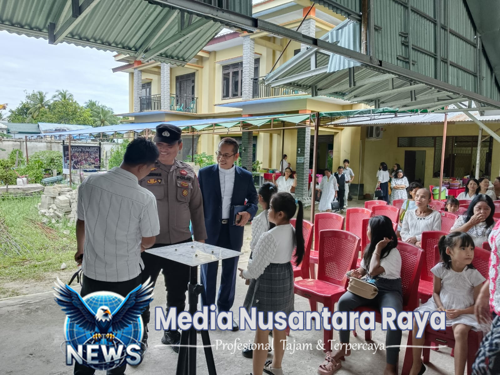 Dalam kegiatan tersebut Aipda R.O Nainggolan bertugas pengamanan di Gereja memberikan pesan kamtibmas kepada jemaat gereja,