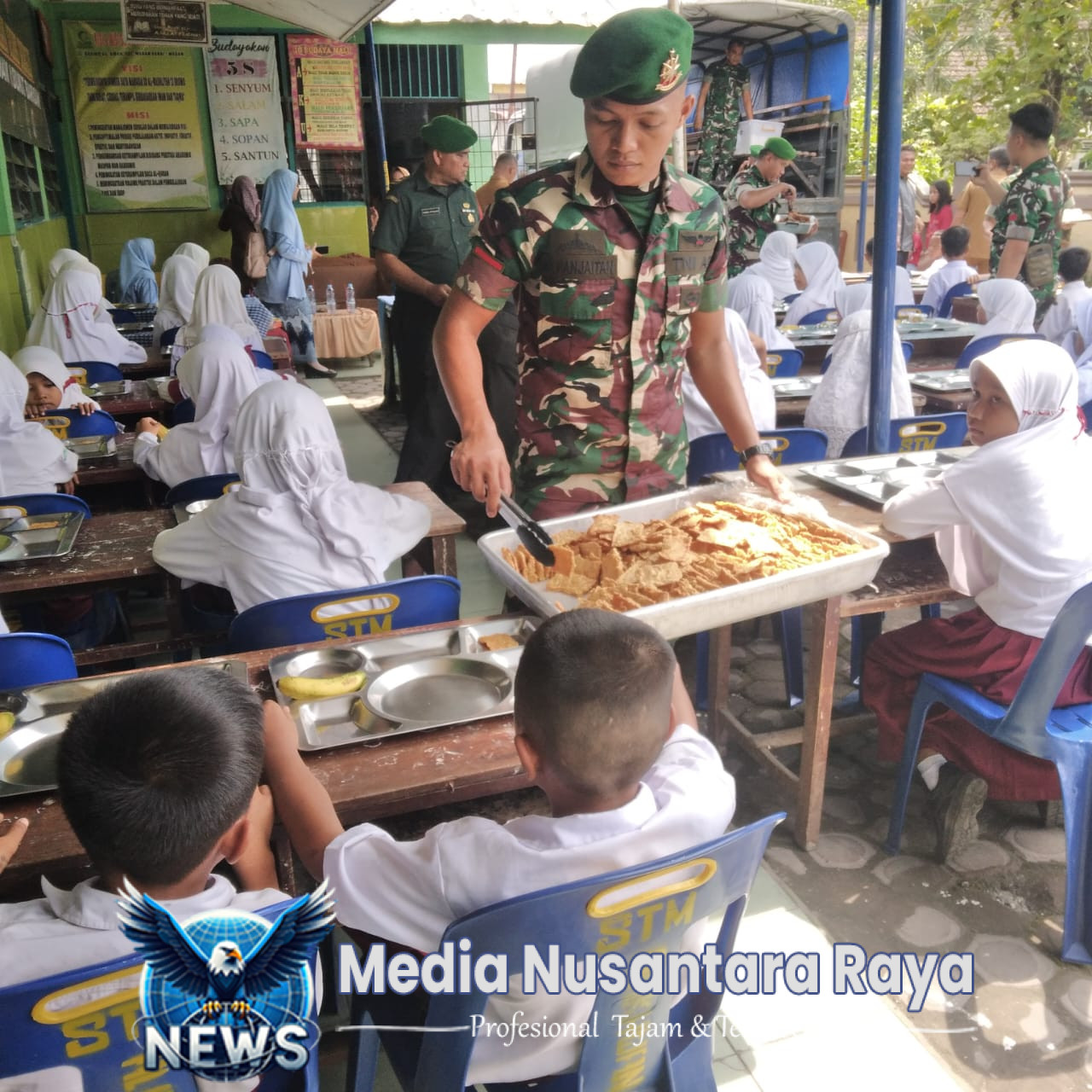 MEDAN//NUSANTARARAYA.COM//Kodam I/Bukit Barisan menunjukkan komitmennya dalam meningkatkan kesejahteraan masyarakat melalui kegiatan makan sehat bergizi di SD Al-Wasliyah 12 Jalan Bromo, Gang Kurnia, Kelurahan TSM III, Kecamatan Medan Denai, Senin (28/4/2025). Kegiatan ini bertujuan untuk meningkatkan kesadaran akan pentingnya gizi seimbang bagi anak-anak guna mendukung tumbuh kembang yang optimal.