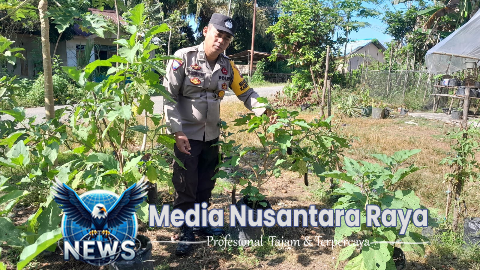 Polsek Sebangki,Polres Landak,Polda Kalbar//NUSANTARARAYA.COM//Dalam upaya mendukung program ketahanan pangan dan meningkatkan kesejahteraan masyarakat, seorang anggota Kanit Binmas Polsek Sebangki, Aipda Suriansyah, bersama Bintara Penggerak Desa Sebangki, Aipda Mamok Raharjo serta Anggota KWT Anggrek terlihat aktif melaksanakan kegiatan monitoring Pekarangan Pangan Lestari (P2L) KWT Anggrek di Dusun Setaik, Desa Sebangki, Kecamatan Sebangki, Kabupaten Landak, Dengan mengenakan seragam dinas, personel Polri tersebut meninjau langsung pertumbuhan tanaman terong yang ditanam dalam polybag di lahan terbuka, Selasa (29/4/2025).