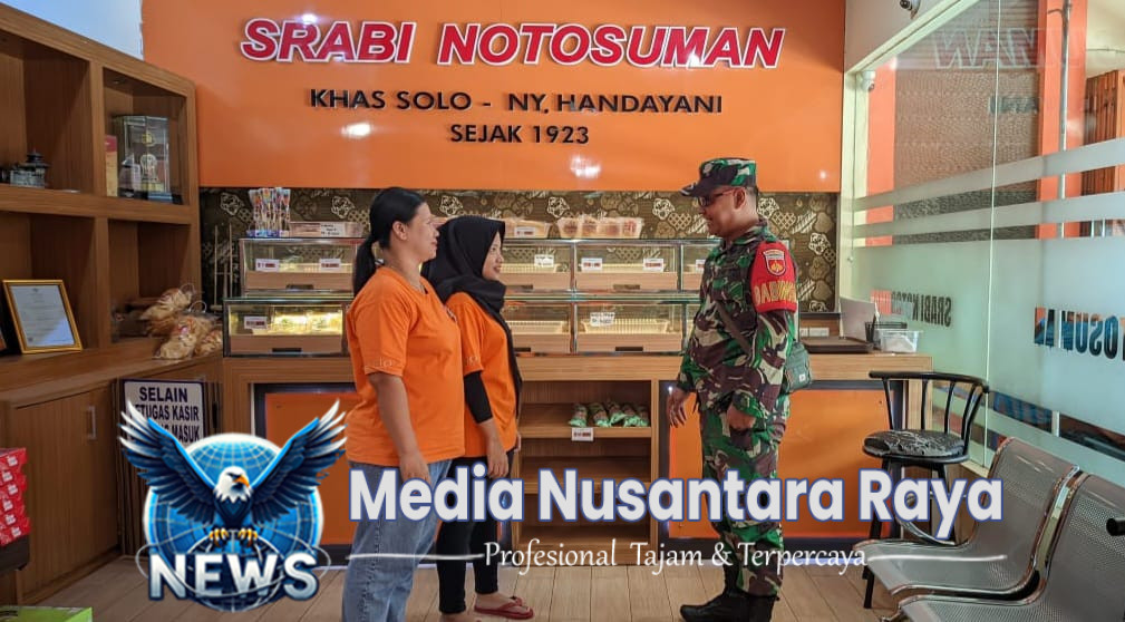 SURAKARTA//NUSANTARARAYA.COM//Babinsa Kelurahan Kratonan Koramil 03/Serengan Kodim 0735/Surakarta Koptu Resbiyanto pada pukul 08.45 Wib melaksanakan Komunikasi sosial (Kosmos) dengan Pelaku usaha Kuliner Khas Solo Srabi Notosuman Ny. Handayani di Jl. Moh. Yamin No.51 Kel.Kratonan-Kec.Serengan, Kota Surakarta. Kamis (01 Mei 2025).