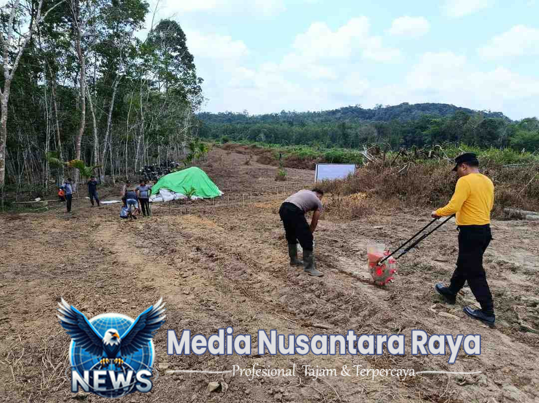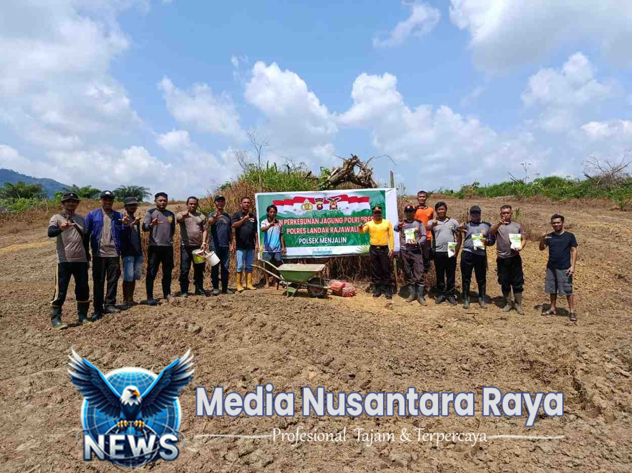 POLSEK MENJALIN//NUSANTARARAYA.COM//Dalam upaya mendukung program ketahanan pangan nasional, Polsek Menjalin gelar penanaman jagung di Lahan Perkebunan Jagung Polri Presisi Polres Landak Rajawali Polsek Menjalin.