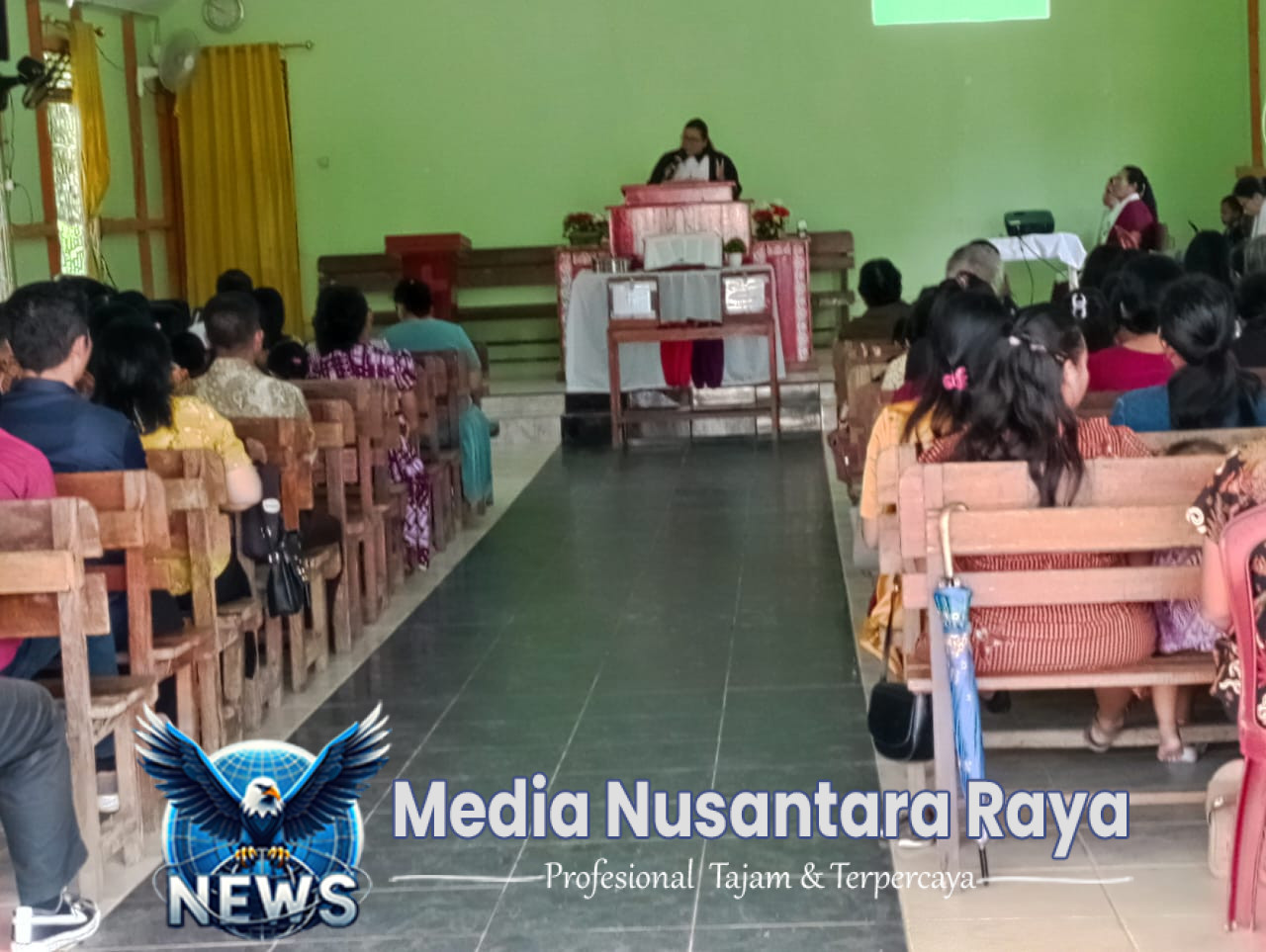 POLRES LANDAK – MENYUKE, POLDA KALBAR//NUSANTARARAYA.COM// Kepala sentral pelayanan kepolisian terpadu regu III Polsek Menyuke dan Anggota memberikan rasa aman dan nyaman kepada warga masyarakat di Desa Darit Kecamatan Menyuke yang melaksanakan ibadah misa pada hari, Minggu (04/05/2025) Pagi.