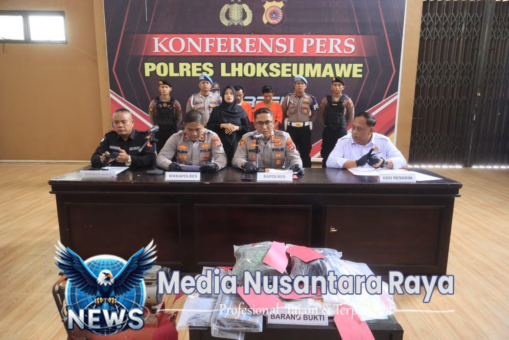 Dalam konferensi pers tersebut, turut hadir Wakapolres Lhokseumawe Kompol Salmidin., S.E., M.M, KBO Reskrim Iptu Edi, serta Kasi Humas Polres Lhokseumawe Salman Alfarasi., S.H., M.M.