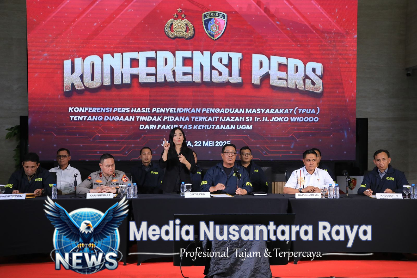 Jakarta//NUSANTARARAYA.COM//Bareskrim Polri menegaskan bahwa dokumen ijazah Joko Widodo dinyatakan asli dan sah berdasarkan hasil penyelidikan dan uji forensik yang mendalam. Hal ini disampaikan dalam konferensi pers oleh Direktorat Tindak Pidana Umum (Dittipidum) Bareskrim Polri di Lobby Utama Gedung Awaloedin Djamin, Bareskrim Polri, Jakarta, Kamis (22/5).