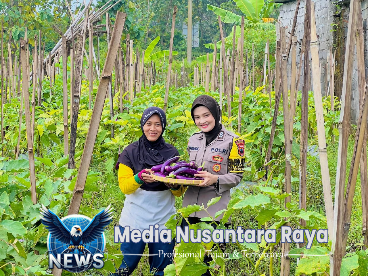 KARANGANYAR // NUSANTARARAYA.COM / Sebagai bentuk nyata dukungan terhadap program ketahanan pangan, Brigadir Sufiana selaku Bhabinkamtibmas Kelurahan Gayamdompo turut serta mendampingi warga dalam kegiatan panen terong di kebun pekarangan milik warga