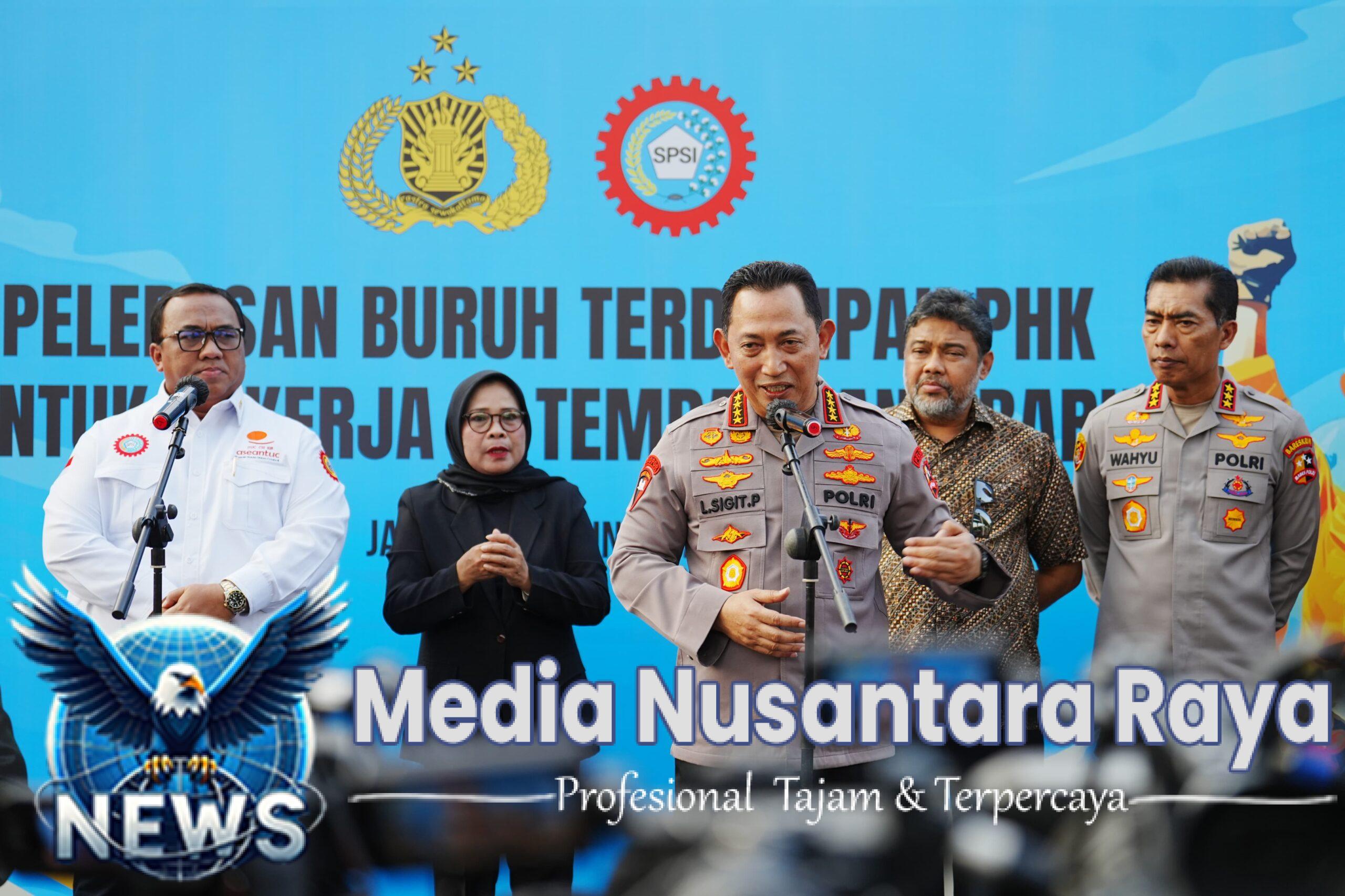 JAKARTA, NUSANTARARAYA.COM ~ Kapolri Jenderal Listyo Sigit Prabowo melepas 700 buruh terdampak Pemutusan Hubungan Kerja (PHK) untuk bekerja di tempat yang baru. Kegiatan tersebut dilaksanakan di Gedung Rupattama, Mabes Polri, Jakarta Selatan, Kamis (12/6/2025).