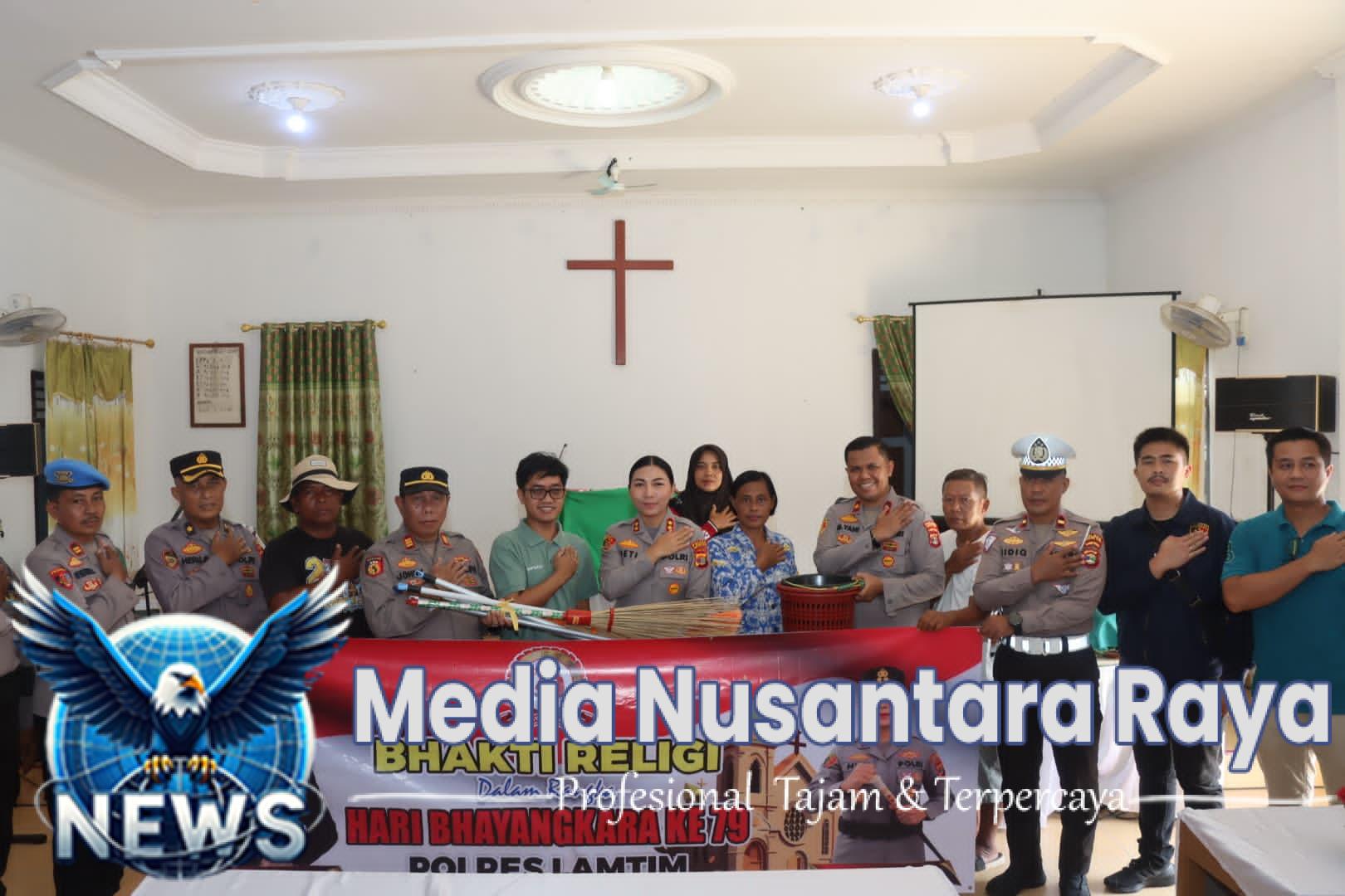 LAMPUNG TIMUR // NUSANTARARAYA.COM / Dalam rangka menyambut Hari Ulang Tahun Bhayangkara ke-79 tahun 2025, Kapolres Lampung Timur AKBP Heti Patmawati memimpin langsung kegiatan bakti religi dan sosial di sejumlah tempat ibadah dan lokasi umum pada Jum’at (13/6/2025).