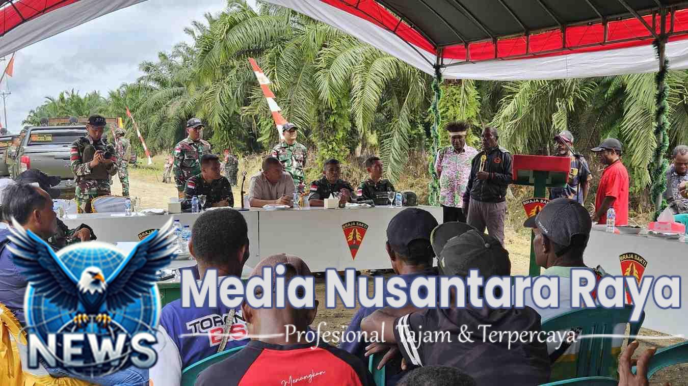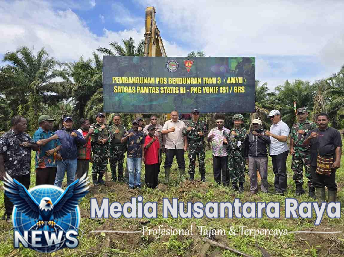KEEROM//NUSANTARARAYA.COM//Dalam suasana penuh khidmat dan kekeluargaan, Jum’at (04/07/2025) pukul 10.45 WIT, masyarakat adat Distrik Arso Timur menggelar upacara adat untuk menandai dimulainya pembangunan Pos Baru Bendungan Tami 1, 2, dan 3 oleh Satgas Pamtas RI-PNG Yonif 131/Brs. Kegiatan yang berlangsung di Kampung Amyu ini menjadi simbol kuat kerjasama antara masyarakat adat Papua dan TNI dalam menjaga kedaulatan serta perdamaian di wilayah perbatasan.