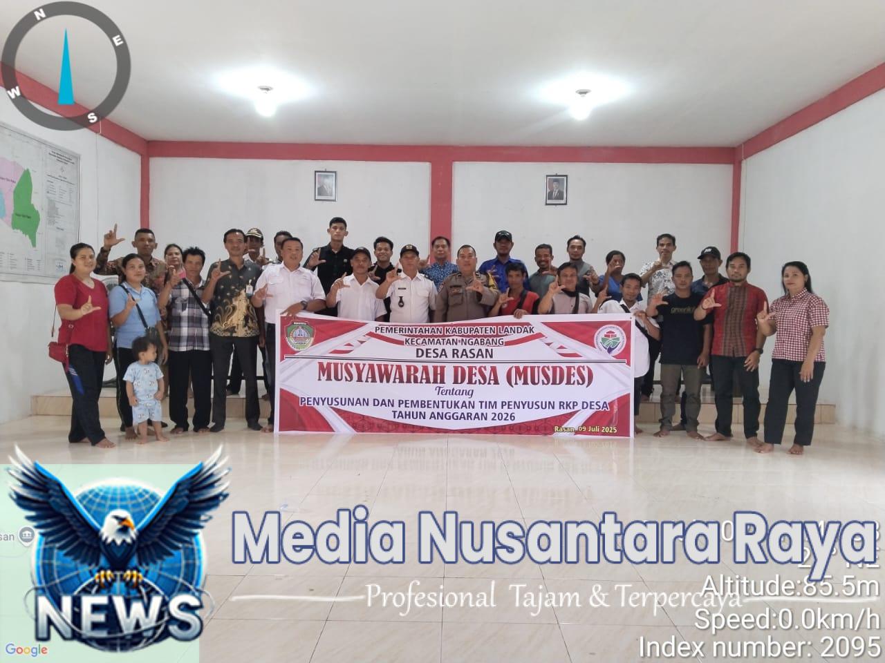 Polsek Ngabang//NUSANTARARAYA.COM// Polres Landak – Polda Kalbar, Untuk mewujudkan perencanaan tahunan Desa dalam upaya terwujudnya Rencana Kerja Pemerintah Desa yang partisipatif, berkesinambungan serta mensinergikan pembangunan dan pemberdayaan masyarakat, Badan Pemusyawatan Desa (BPD) bekerja sama dengan Pemerintah Desa Rasan melaksanakan Musyawarah Desa (Musdes) dalam rangka penyusunan Rancangan RKP Desa Tahun 2026 di Balai Pertemuan Desa Rasan Kecamatan Ngabang Kabupaten Landak. Rabu (09/07/2025)