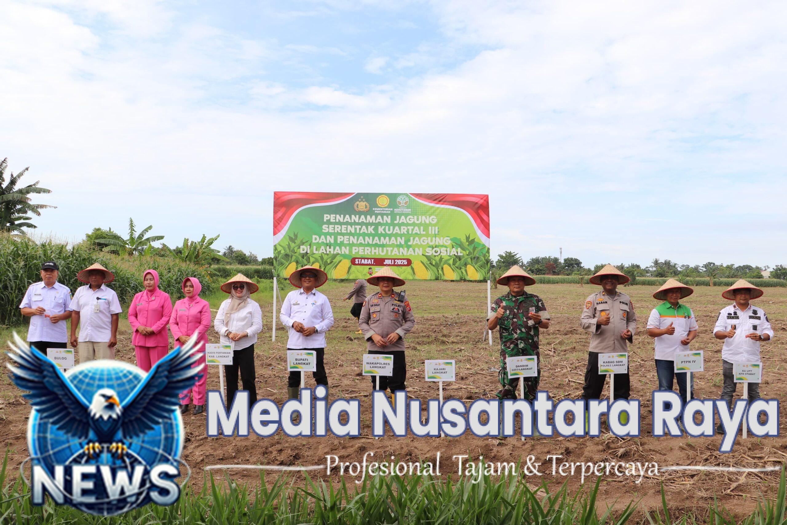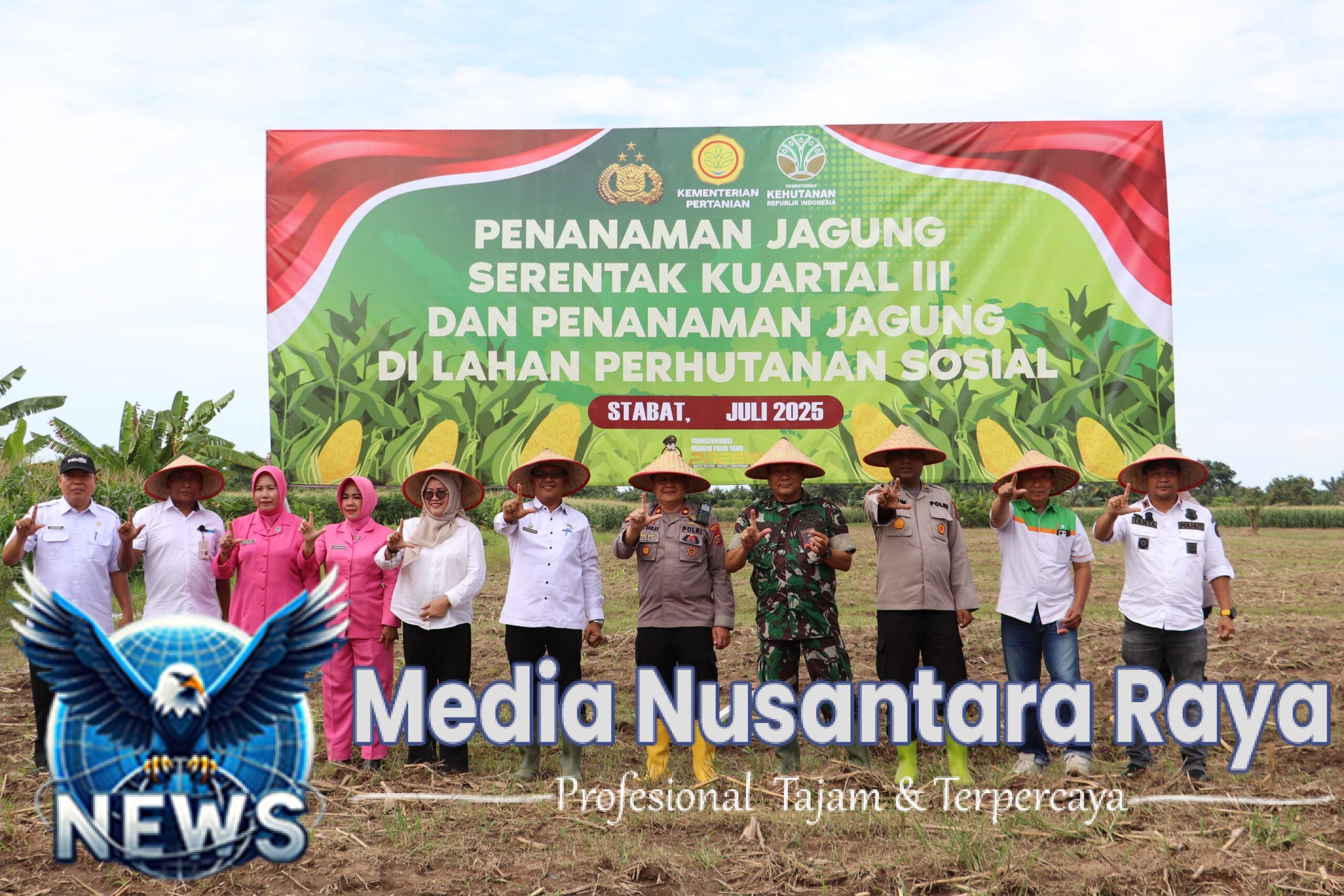 LANGKAT//NUSANTARARAYA.COM//Kapolres Langkat, AKBP David Triyo Prasojo, SH, SIK, MSi., diwakili Wakapolres Kompol Husnil Mubarok Daulay, SH.SIK.MIK, melaksanakan penanaman jagung serentak kuartal III di lahan Bhayangkara kelurahan Kwala Bingai Kecamatan Stabat Kabupaten Langkat, Rabu (09/07/2025).