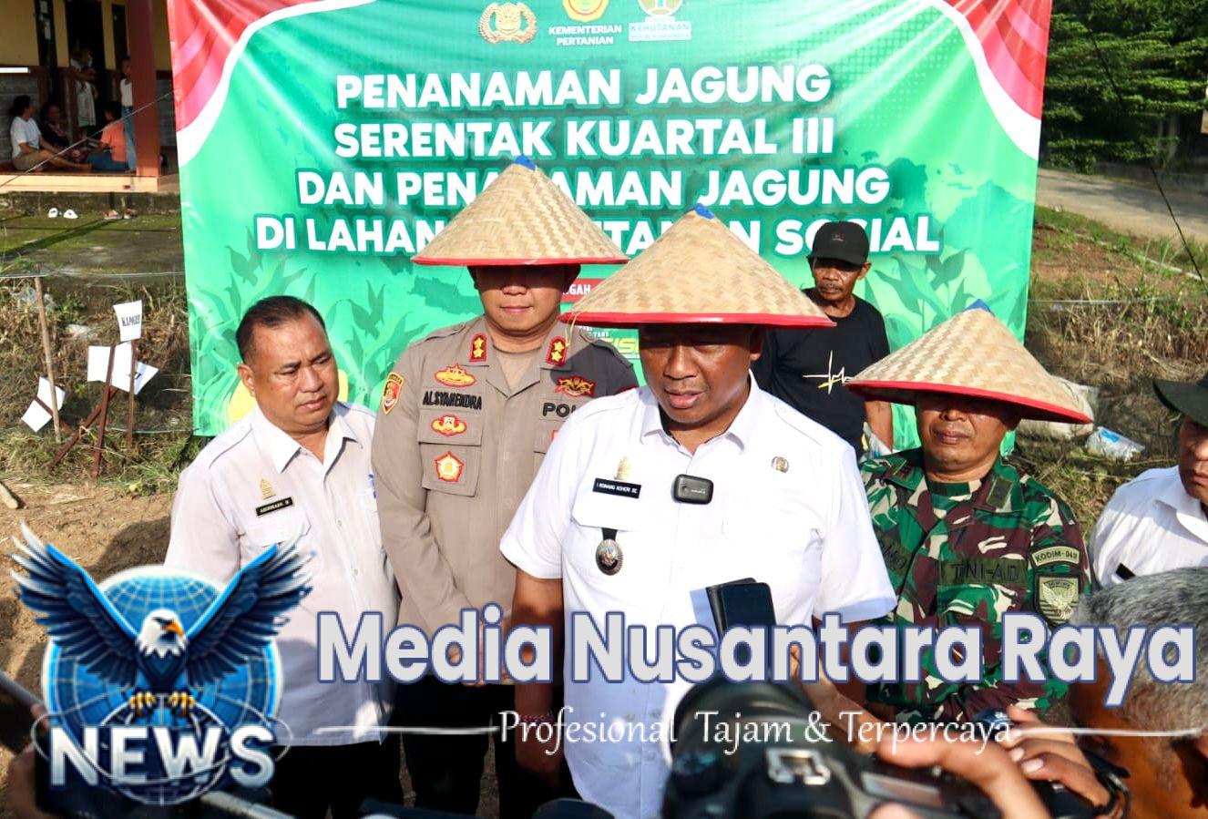 Lampung Tengah//NUSANTARARAYA.COM//Polres Lampung Tengah bersama Forum Komunikasi Pimpinan Daerah (Forkopimda) Kabupaten setempat melaksanakan kegiatan Penanaman Jagung Serentak Kuartal III sebagai bentuk dukungan terhadap program swasembada pangan nasional yang digagas oleh Polri bekerja sama dengan Kementerian Pertanian RI.