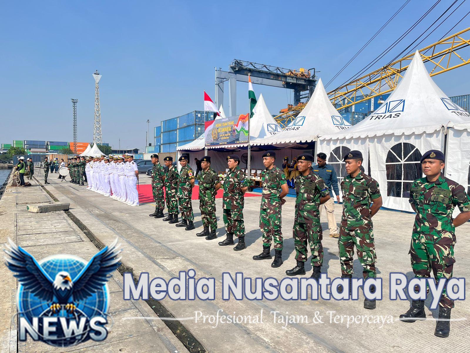 JAKARTA//NUSANTARARAYA.COM//TNI AL, Pen Kormar, Pasmar 1. Semangat dan profesionalisme kembali ditunjukkan oleh prajurit Hiu Perkasa Yonmarhanlan III Jakarta saat melaksanakan kegiatan Pengamanan (PAM) penyambutan Kapal Perang Angkatan Laut (KPA) INS SANDHAYAK (J18) milik Angkatan Laut India yang bersandar di Dermaga 107, Tanjung Priok, Jakarta Utara, pada rabu (23/7/2025).