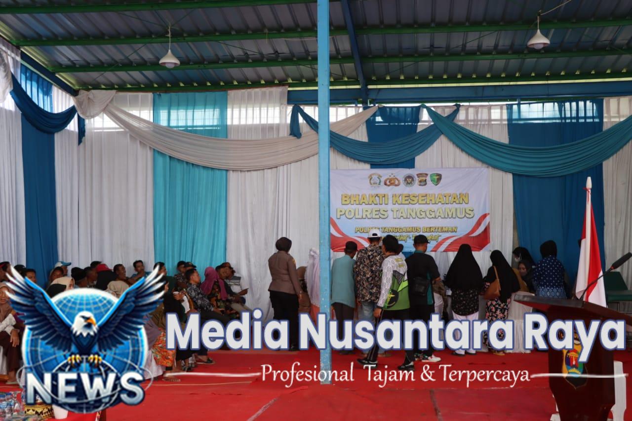 TANGGAMUS//NUSANTARARAYA COM//Polres Tanggamus menggelar kegiatan bakti kesehatan gratis dan pembagian paket bahan pokok bagi masyarakat di Dusun Talang Tebat, Pekon Tekad, Kecamatan Pulau Panggung, pada Senin (28/7/2025).