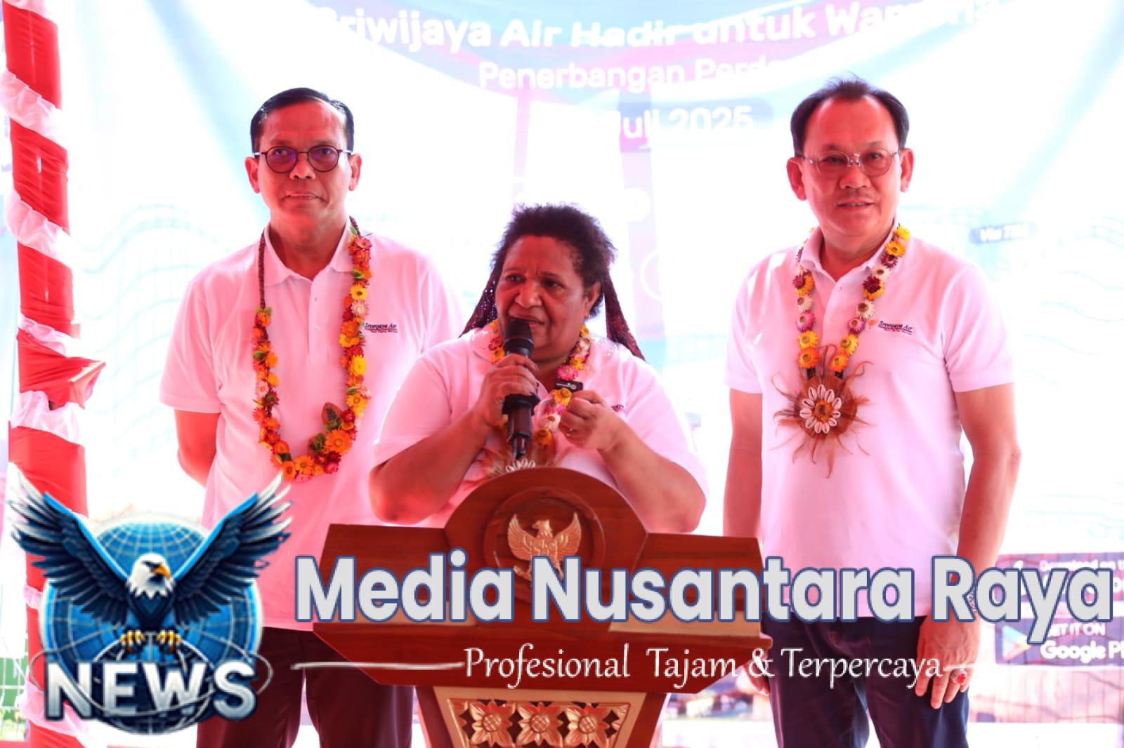 JAYAWIJAYA, NUSANTARARAYA.COM ~ Wakil Menteri Dalam Negeri (Wamendagri) Ribka Haluk mengawal langsung penerbangan perdana maskapai Sriwijaya Air ke Bandara Wamena, Kabupaten Jayawijaya, Papua Pegunungan, Selasa (29/7/2025). Ribka berharap pembukaan rute Sriwijaya Air ke bandara tersebut dapat memberikan dampak positif terhadap kesejahteraan masyarakat Papua Pegunungan.