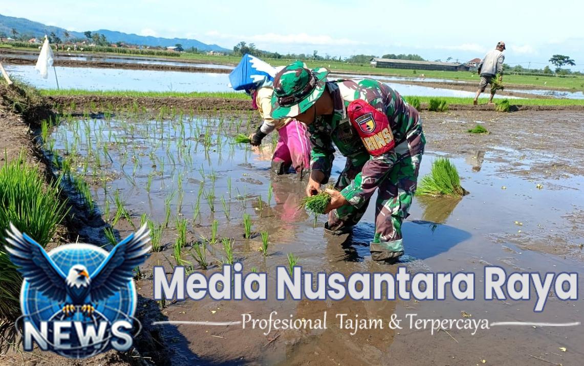 MALANG//NUSANTARARAYA COM//Dalam upaya menjaga ketahanan pangan nasional, Babinsa Koramil 0818/15 Dampit, Serda Sukis, turun langsung ke sawah mendampingi petani menanam padi. Kegiatan yang berlangsung di Dusun Dampit Wetan, Kecamatan Dampit, Kabupaten Malang, ini merupakan bagian dari komitmen TNI Angkatan Darat dalam mendukung program pemerintah untuk mewujudkan swasembada beras. (05/08/2025)