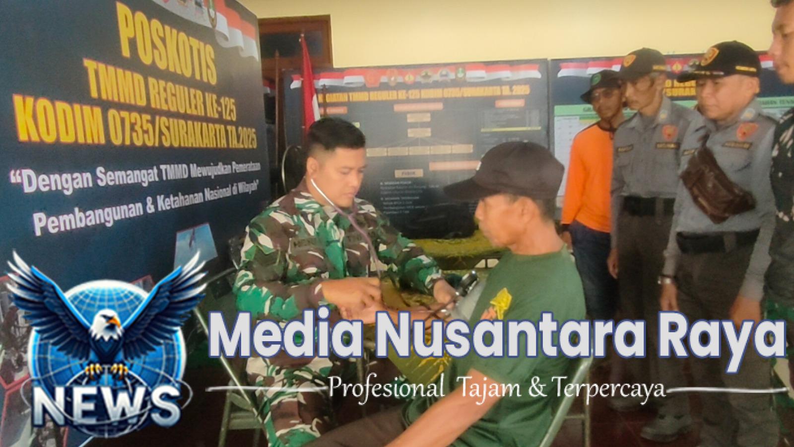 SURAKARTA//NUSANTARARAYA.COM//- TMMD Reguler Ke-125 Kodim 0735/Surakarta sudah berjalan beberapa hari, tentu membuat kondisi kesehatan ada yang mengalami ganguan dikarenakan Kondisi cuaca yang tidak menentu, panas menyengat bila siang hari dan dingin yang menusuk tulang di malam hari dan terkadang juga hujan membuat daya tahan tubuh lemah dan rentan terkena penyakit.