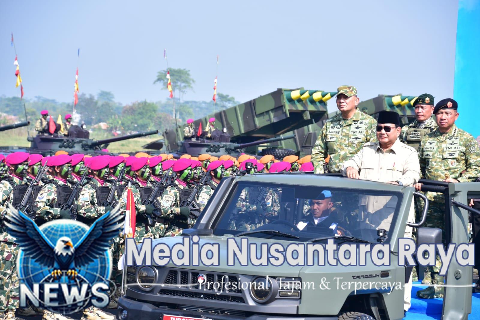 BANDUNG BARAT//NUSANTARARAYA.COM//Prajurit Petarung Pasmar 1 menunjukkan penampilan gagah di hadapan Presiden Republik Indonesia H. Prabowo Subianto yang menjadi Inspektur Upacara (Irup) pada Upacara Gelar Pasukan Operasional dan Kehormatan Militer yang digelar di Lapangan Udara Suparlan Pusdiklatpassus Batujajar, Bandung Barat, Minggu (10/08/2025).