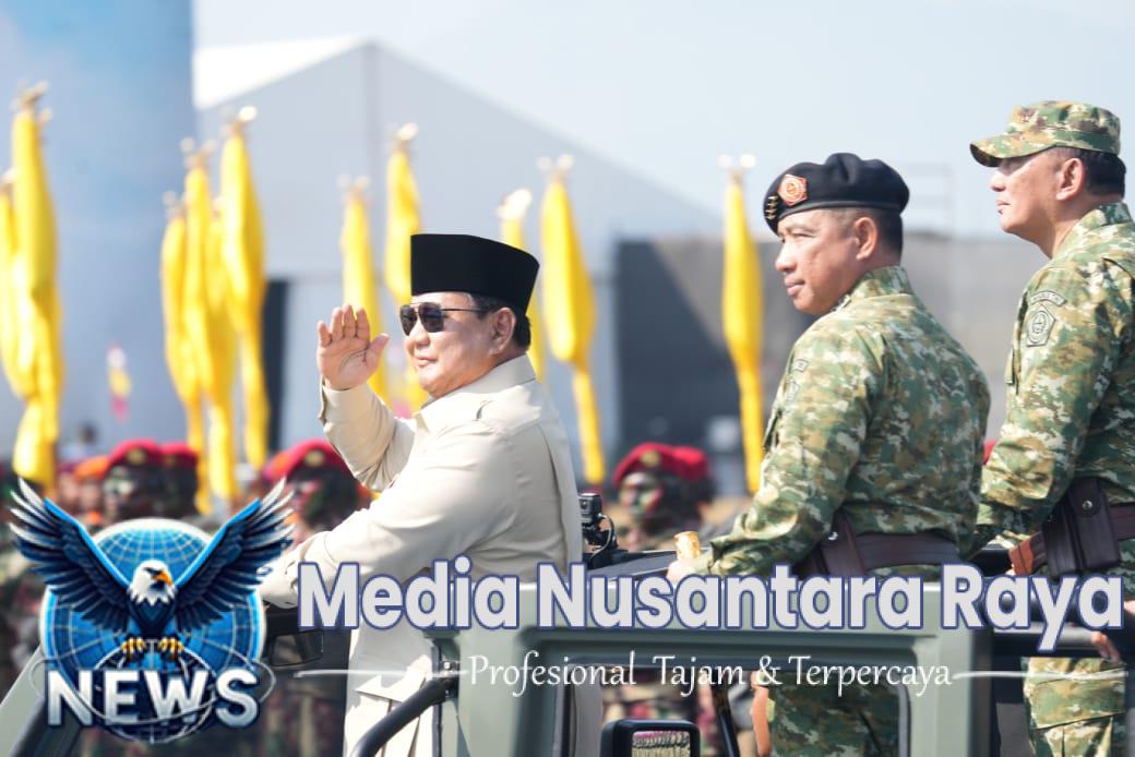 BATUJAJAR//NUSANTARARAYA.COM// Presiden Republik Indonesia Prabowo Subianto meresmikan enam Komando Daerah Militer (Kodam) baru, 20 Brigade Infanteri Teritorial Pembangunan (Brigif TP), dan 100 Batalyon Infanteri Teritorial Pembangunan (Yonif TP) dalam Upacara Gelar Pasukan Operasional dan Kehormatan Militer di Lanud Suparlan, Pusdiklatpassus, Batujajar, Bandung, Jawa Barat, Minggu (10/8/2025). Upacara yang diikuti tiga matra TNI ini sekaligus menjadi momen peresmian sejumlah satuan operasional baru lainnya di jajaran TNI.