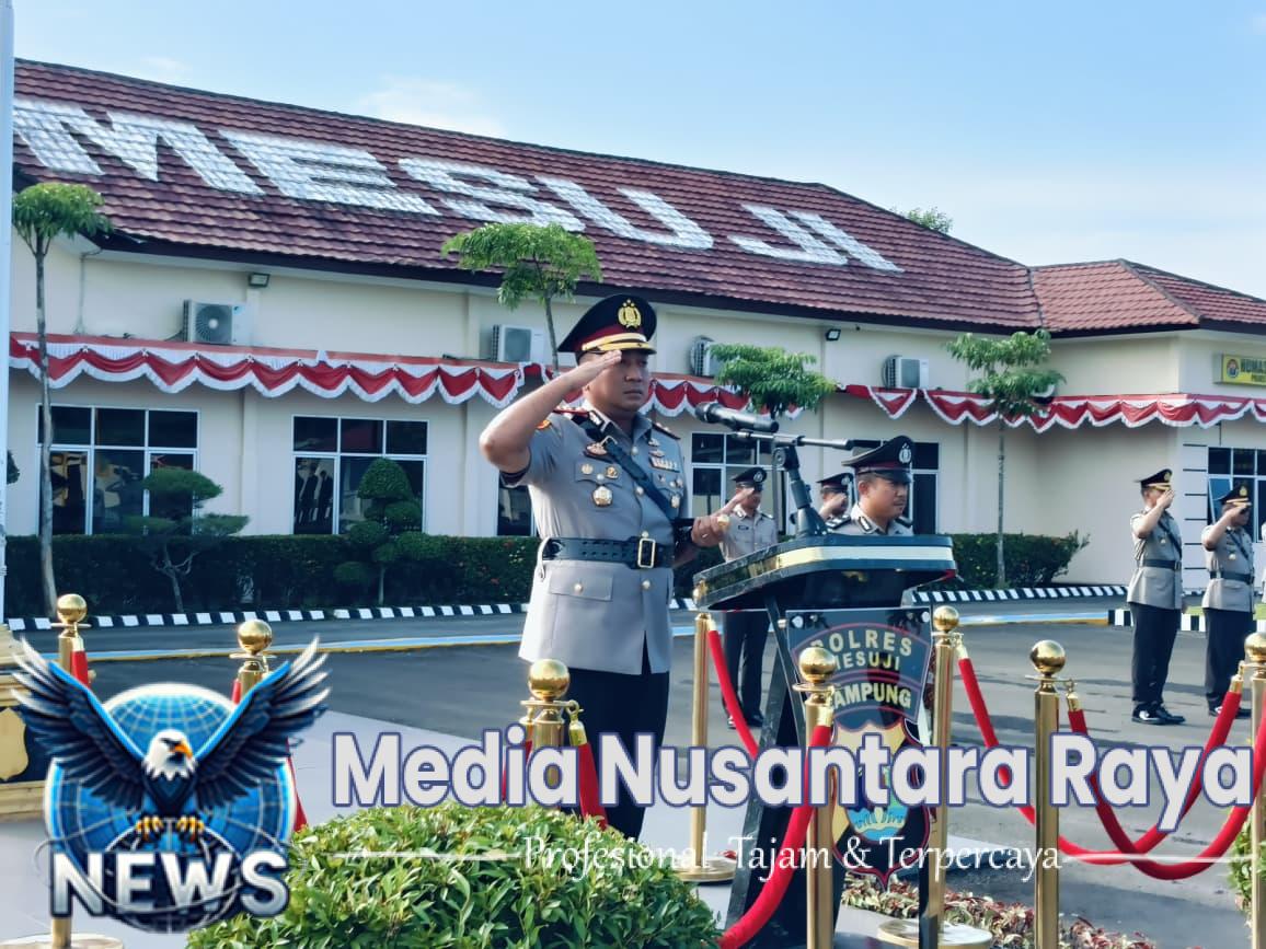 Upacara di pimpin langsung oleh Kapolres Mesuji AKBP Dr. Muhammad Firdaus S.Ik, M.H dengan di ikuti seluruh PJU dan Personil Polres Mesuji.