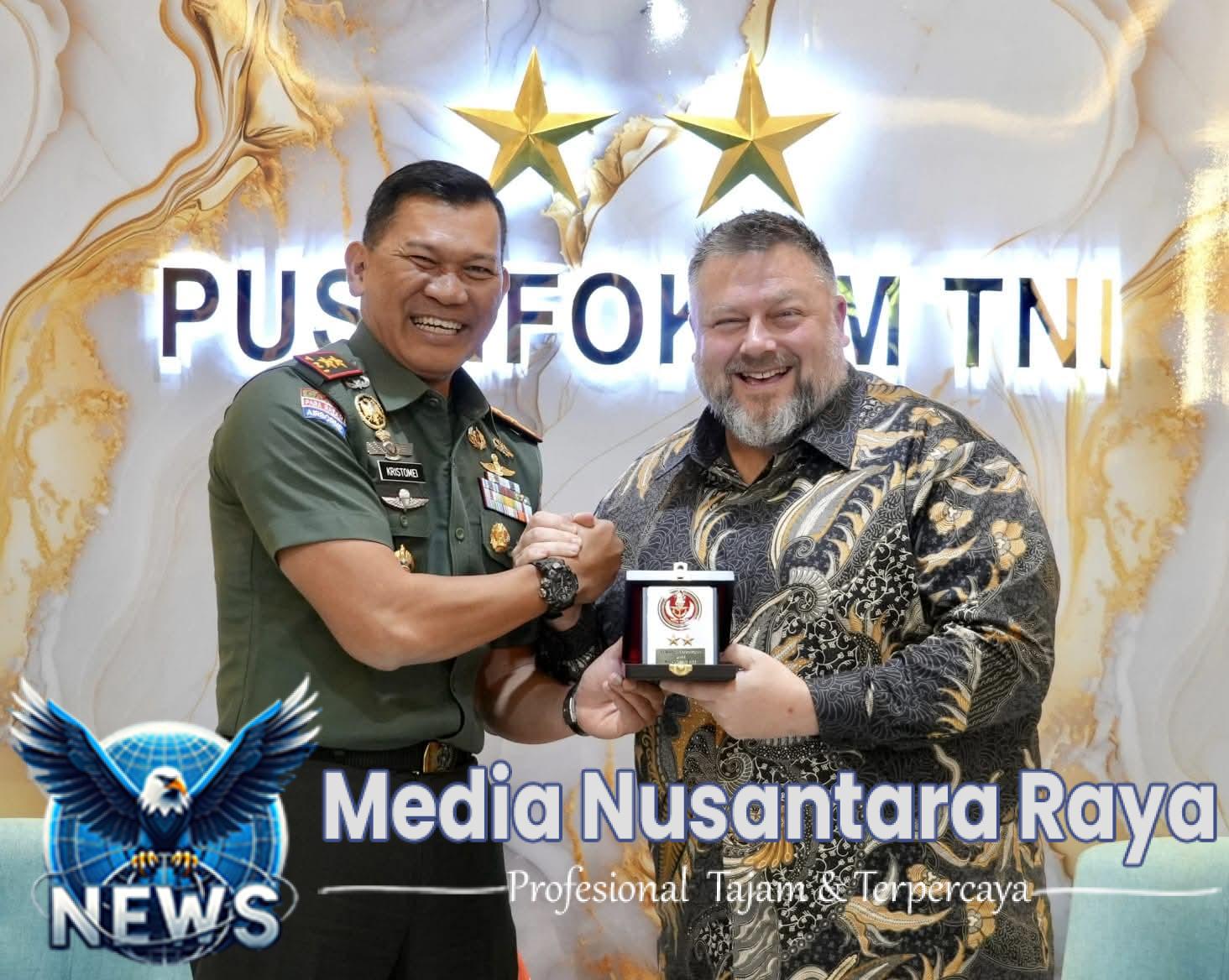 JAKARTA//NUSANTARARAYA.COM// Kepala Pusat Penerangan (Kapuspen) TNI Mayjen TNI Kristomei Sianturi, S. Sos., M.Si. (Han)., menerima kunjungan Atase Pers Kedutaan Besar Amerika Serikat untuk Indonesia Jamie W. Ravetz, bertempat di Ruang Tamu Gedung TB. Simatupang, Puspen TNI, Jakarta, Rabu (20/8/2025).