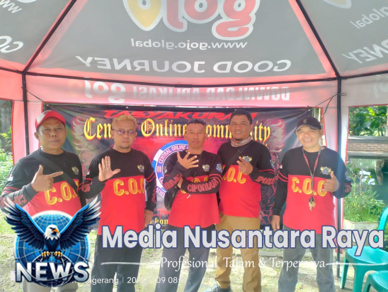 TANGERANG//NUSANTARARAYA.COM,// 9 November 2025 – Keluarga besar Central Online Community (COC) Cipondoh menggelar tasyakuran dan pemotongan tumpeng sebagai puncak perayaan hari jadi ke-5 komunitas tersebut. Acara berlangsung di Sekretariat Porbeta Vila Bata Merah Peuser, Kecamatan Panongan, Kabupaten Tangerang, pada Minggu, 9 November 2025, dari pukul 09.00 hingga 17.00 WIB.