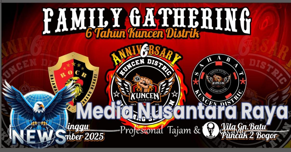 BOGOR//NUSANTARARAYA.COM//, 9 November 2025 – Komunitas Kuncen Distrik merayakan milad (hari jadi) ke-6 dengan mengadakan acara silaturahmi yang penuh keakraban di Villa Bunga, Sukamakmur, Bogor. Acara ini, yang diselenggarakan pada hari Sabtu, 9 November 2025, bertujuan untuk mempererat tali persaudaraan dan semangat kebersamaan antar anggota komunitas.