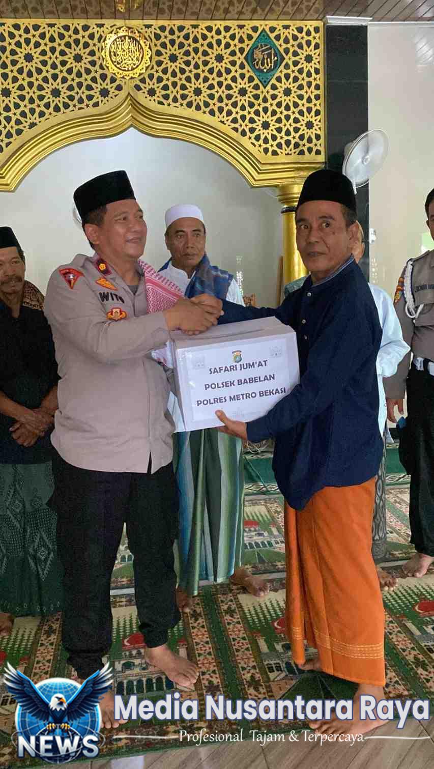 BEKASI//NUSANTARARAYA.COM//– Kapolsek Babelan Kompol Wito, SH., MH bersama jajaran melaksanakan kegiatan Safari Jumat di Masjid Jami At Taubah, Kampung Tanah Baru Pondok Dua RT 07/03 Desa Hurip Jaya, Kecamatan Babelan, Kabupaten Bekasi, Jumat (28/11/2025).