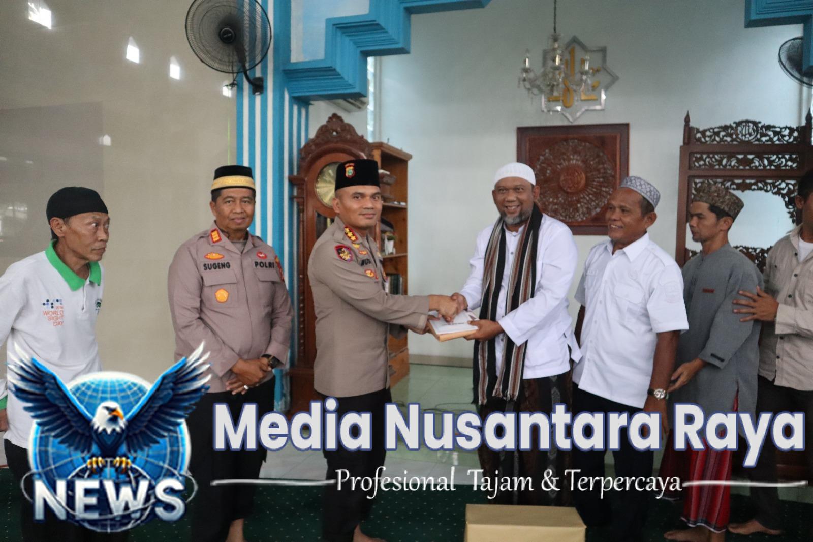Dalam suasana hangat di halaman masjid, Kapolres didampingi jajaran pejabat utama, antara lain KOMPOL Judika Sinaga, KOMPOL Sugihartono, AKP Erwin Setiawan, AKP Painondang Marbun, AKP Sugeng Haryanto, AKP Aliyani, serta para Kanit dan Bhabinkamtibmas yang hadir sebagai wujud nyata dukungan Polri kepada masyarakat dan tokoh agama.