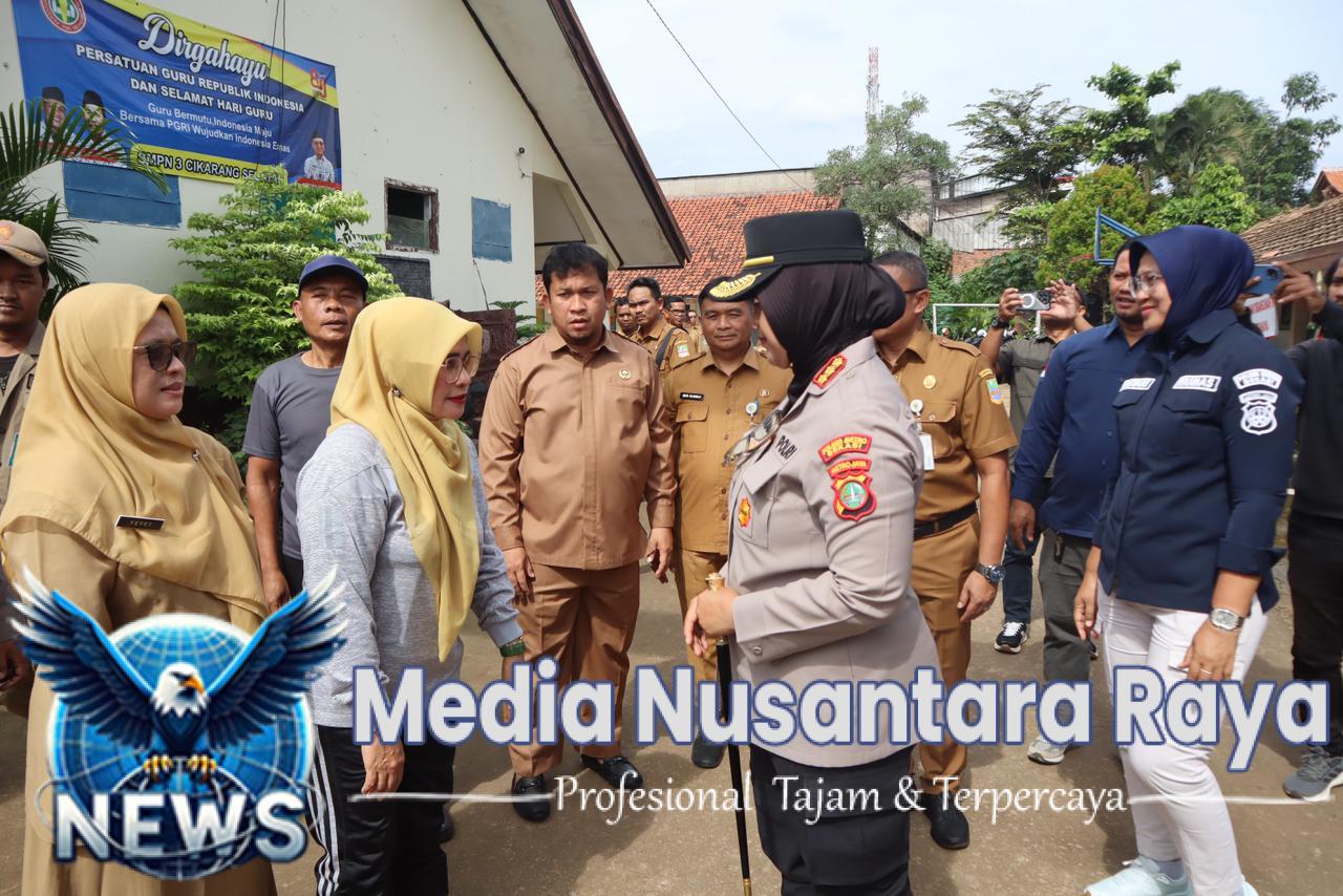 CIKARANG SELATAN//NUSANTARARAYA.COM//– Kapolres Metro Bekasi KBP Sumarni melakukan kunjungan ke SMPN 3 Cikarang Selatan untuk mengecek langsung kondisi atap sekolah yang roboh di tiga ruang kelas, di Perumahan Graha Ciantra Blok A/D, Desa Ciantra, Kecamatan Cikarang Selatan, Kabupaten Bekasi, Selasa (20/01/2026).